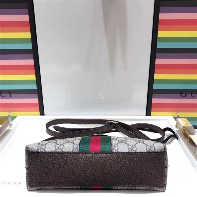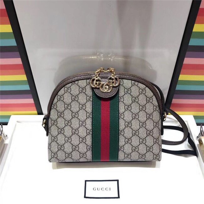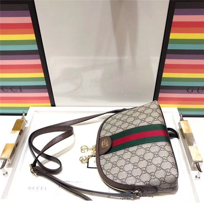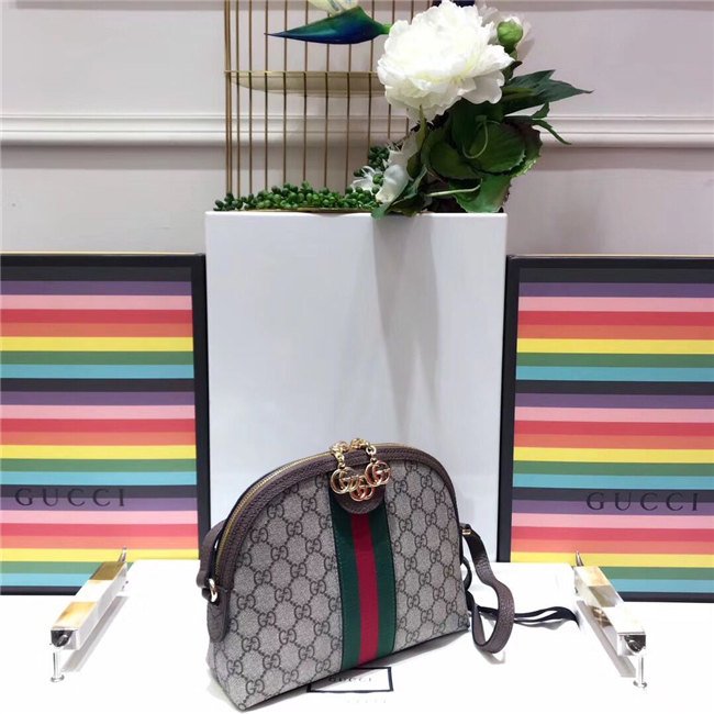 Crafted in GG Supreme canvas with inlaid Web stripe detail, the shoulder bag has a domed shape that recalls vintage designs. The Double G: an archival code appears atop a leather tab detail and on the zipper pull.