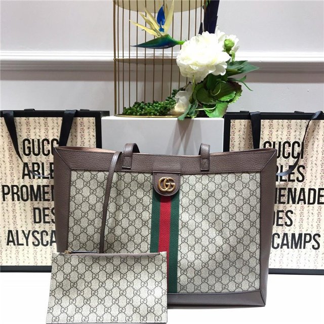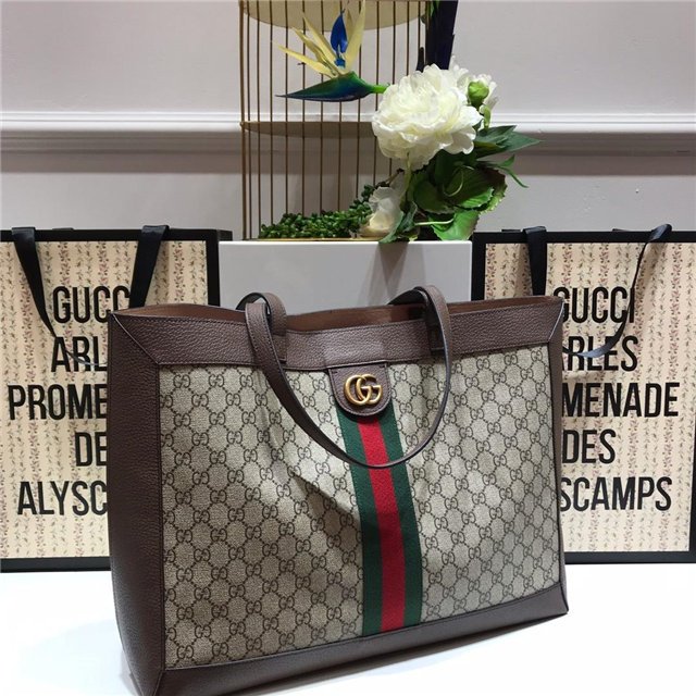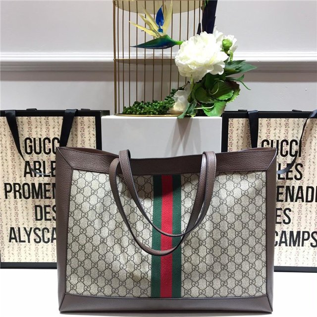 A classic combination of the House’s most recognizable elements—the GG motif and Web stripe—the world of Ophidia continues to evolve, incorporating new shapes and silhouettes. The wide tote is made from supple soft GG Supreme canvas, trimmed with textured leather and topped with Double G hardware.