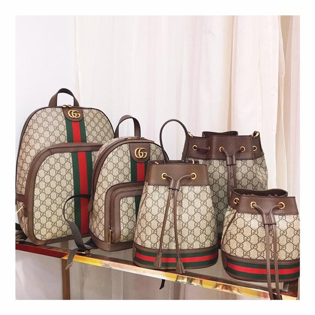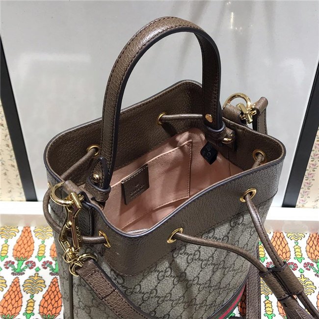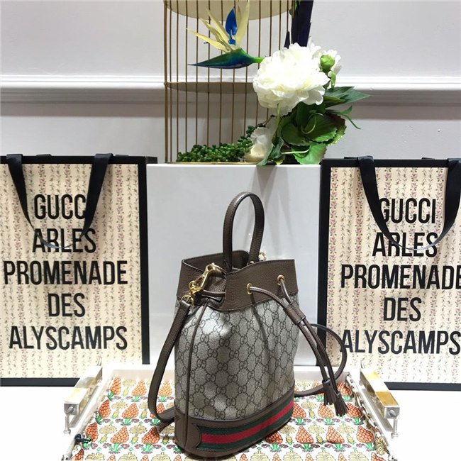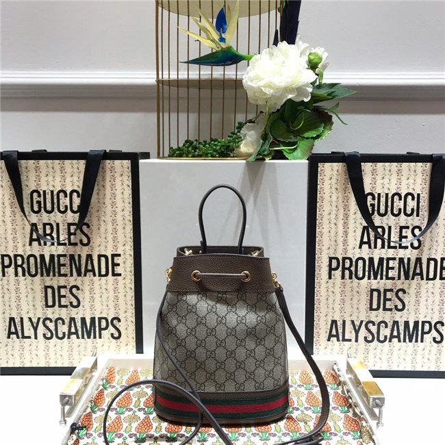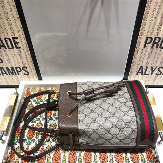 A drawstring shoulder bag with a bucket shape made in soft GG Supreme makes for a multi-functional addition in the world of Ophidia. Trimmed in brown leather, the accessory is defined by the green and red Web stripe inlaid at the bottom. Completed with an extra strap, that can be attached to the original one to emphasize the length, this bag can also be worn across the body.