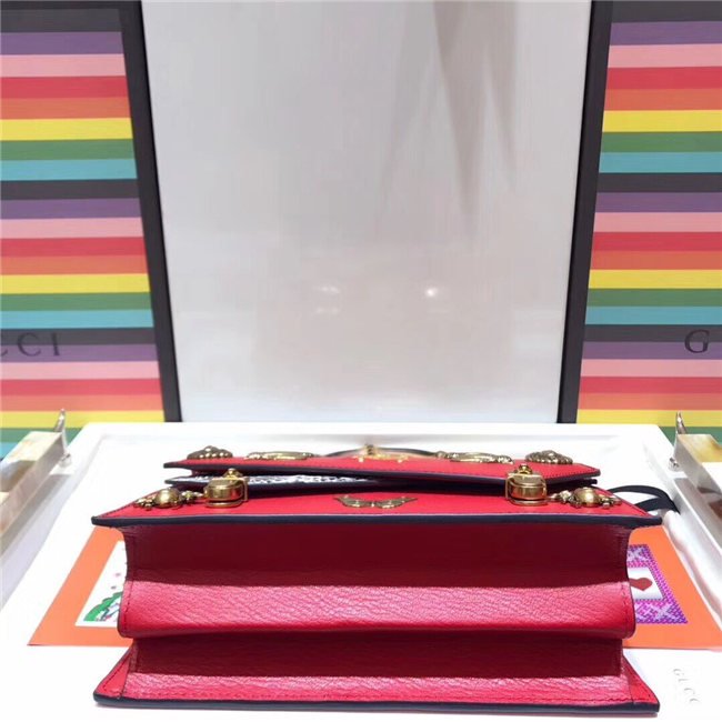 Clasp closures with feline head: one engraved with “Gucci” and the other with “Loved”
