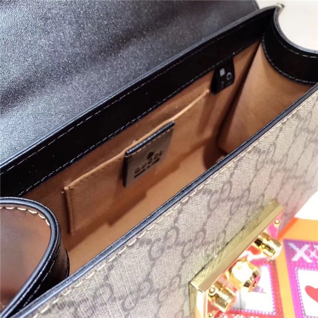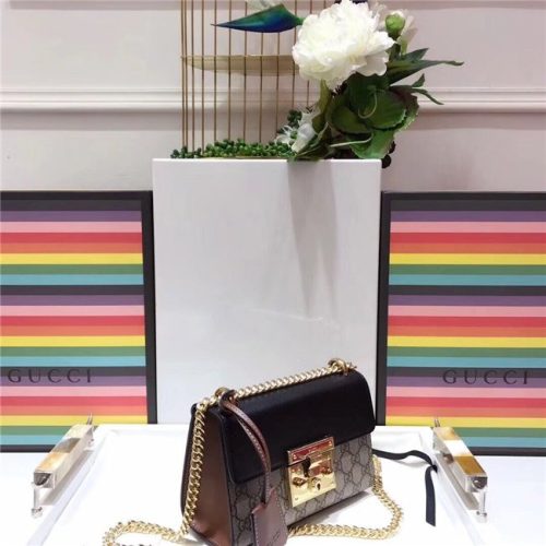 A small structured GG Supreme canvas bag with a leather top and our key lock closure. The sliding chain strap can be worn multiple ways, changing between a shoulder and a top handle bag.