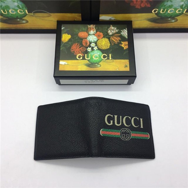 Inspired by vintage prints from the eighties, the Gucci logo is brought to the forefront. The retro-style motif is presented on the front of a bi-fold wallet in supple, textured leather.
