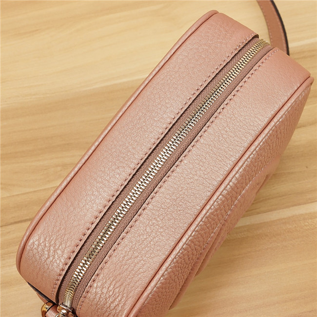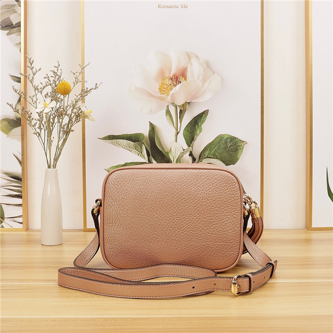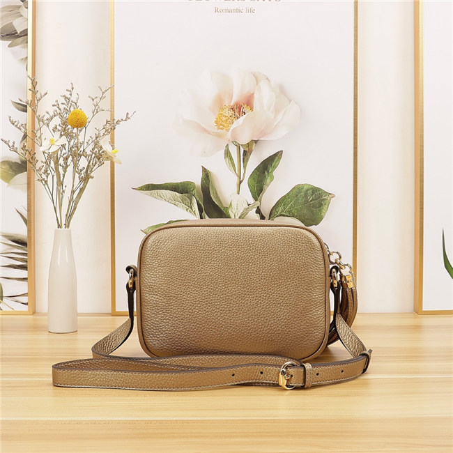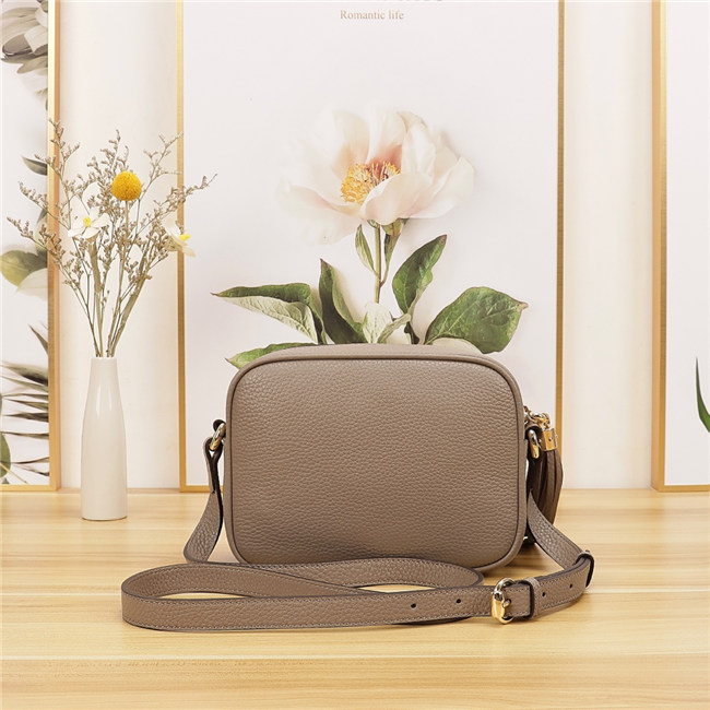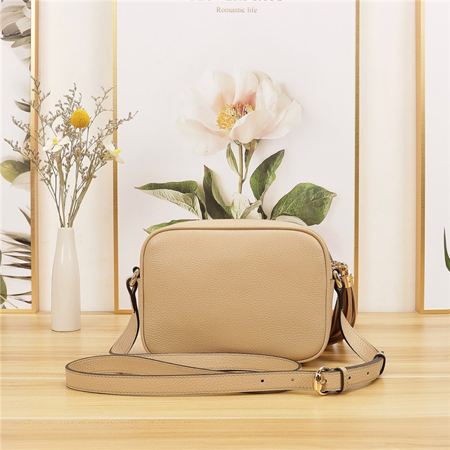 A compact shoulder bag with a leather tassel zipper pull. Sized to fit the necessities. Made in our light, natural grain leather.