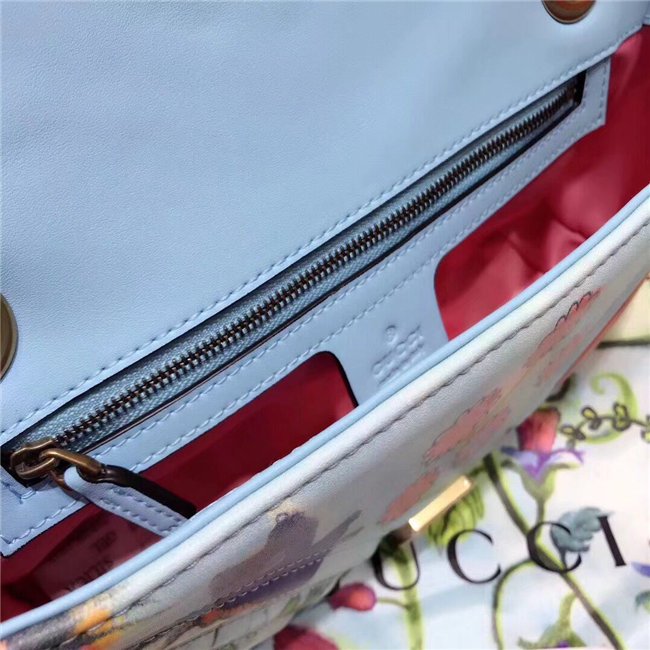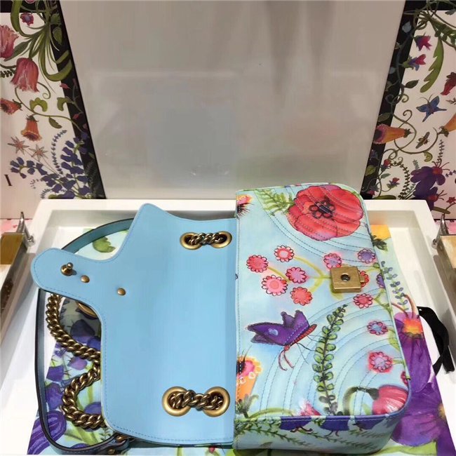 Light blue “Jeanie”s Garden” print matelasse chevron leather with heart on the back