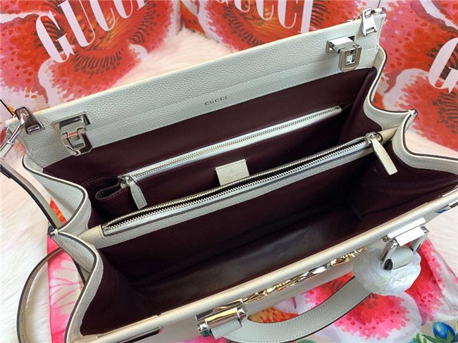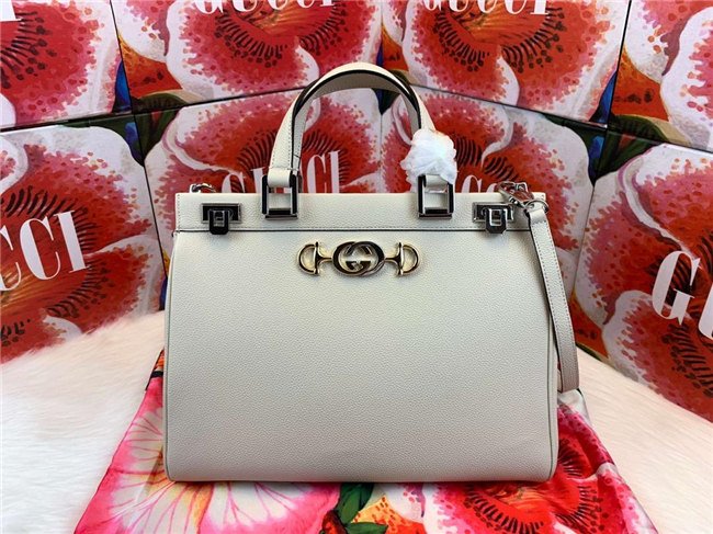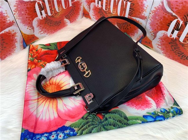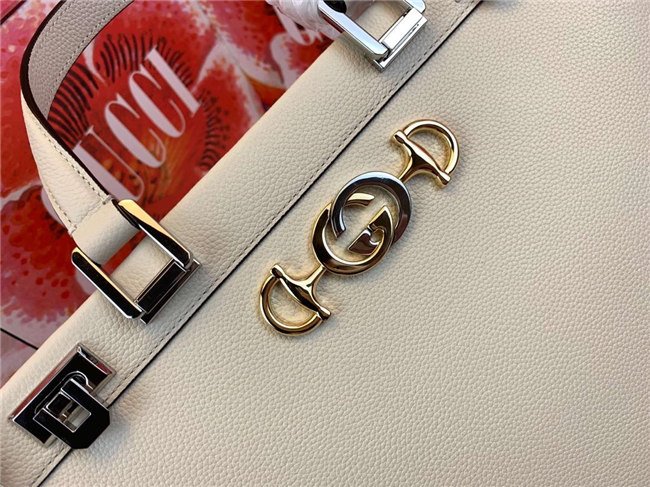 Merging two of its most distinctive codes into one symbol: the Interlocking G Horsebit – the hardware is replicated from a rare piece from the Gucci archives, chosen for its contemporary appeal and presented in a mix of silver and gold tones. A detachable strap creates multifunctionality, doubling as a shoulder bag, while the top opening frame features a hinged lock on each side for a secure closure. Introduced in the evocative setting of the Théatre Le Palace in Paris, the Gucci Zumi line takes its name from actress and experimental musician Zumi Rosow, who walked the Spring Summer 2019 runway carrying the bag.