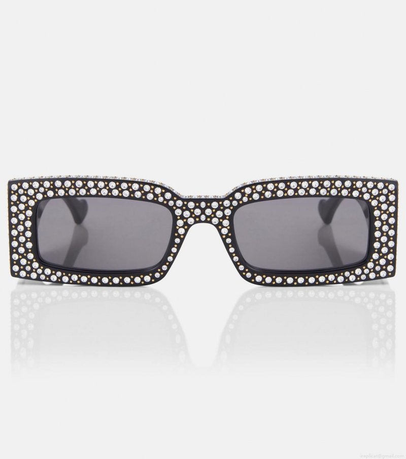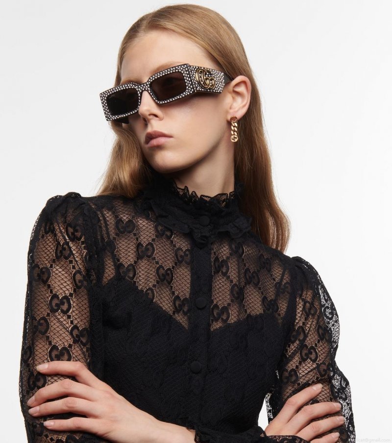 Accessorize the Gucci way with this pair of bold rectangular sunglasses. The large polka-dot frames are accented by a golden Double G logo on the temples, adding instant recognition to your look.