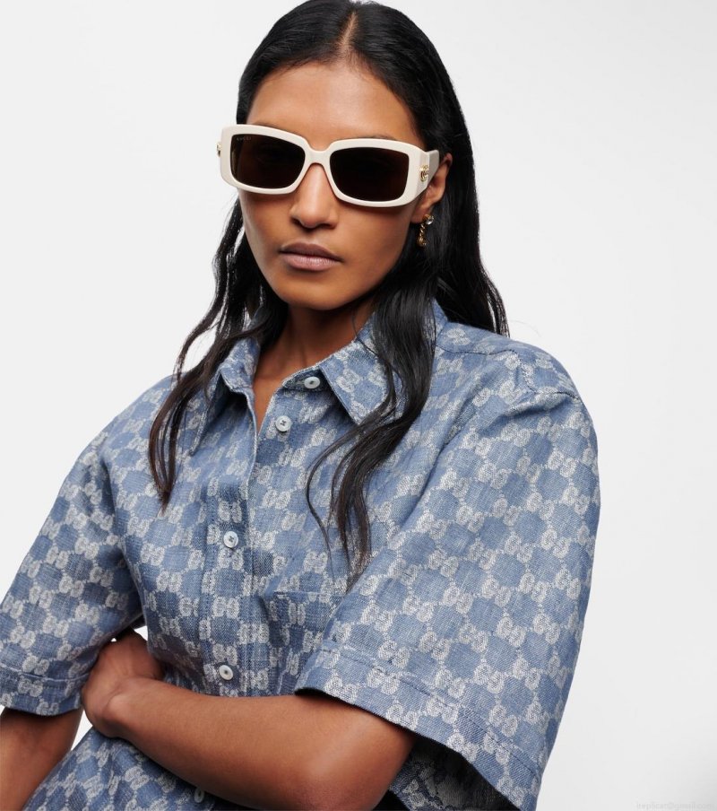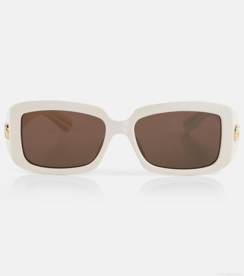 Enjoy a retro-inspired look with these white rectangular sunglasses from Gucci. The brand's signature Double G detail appears on the temples and the style comes with brown lenses.