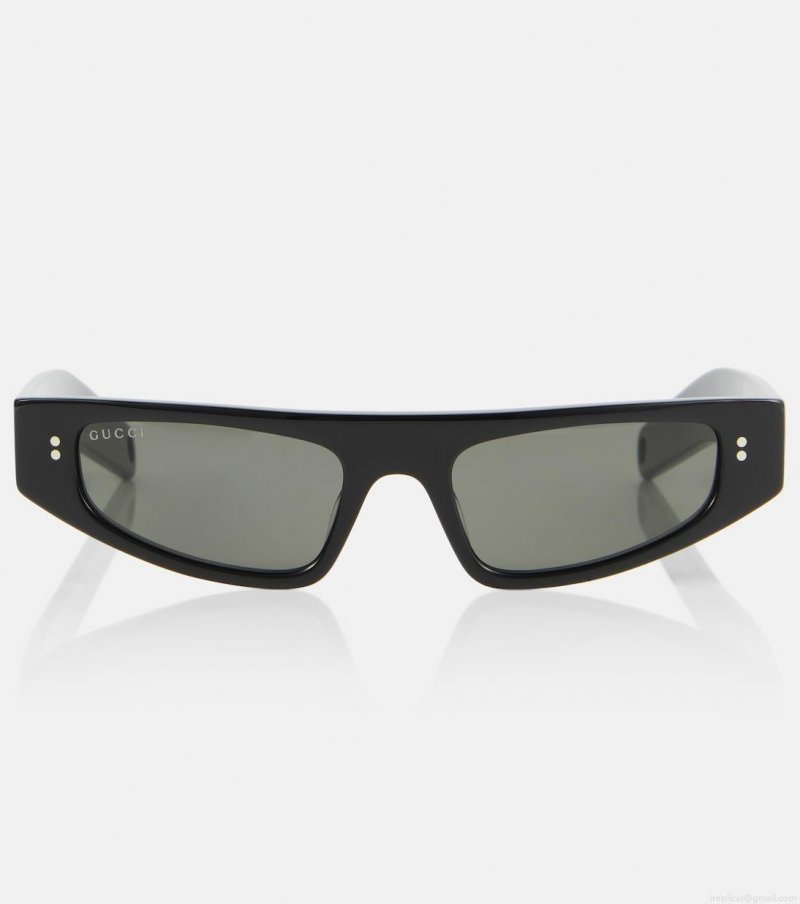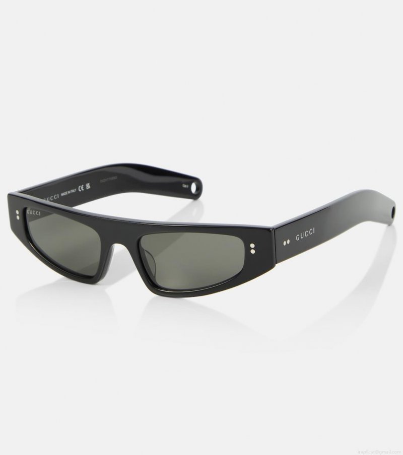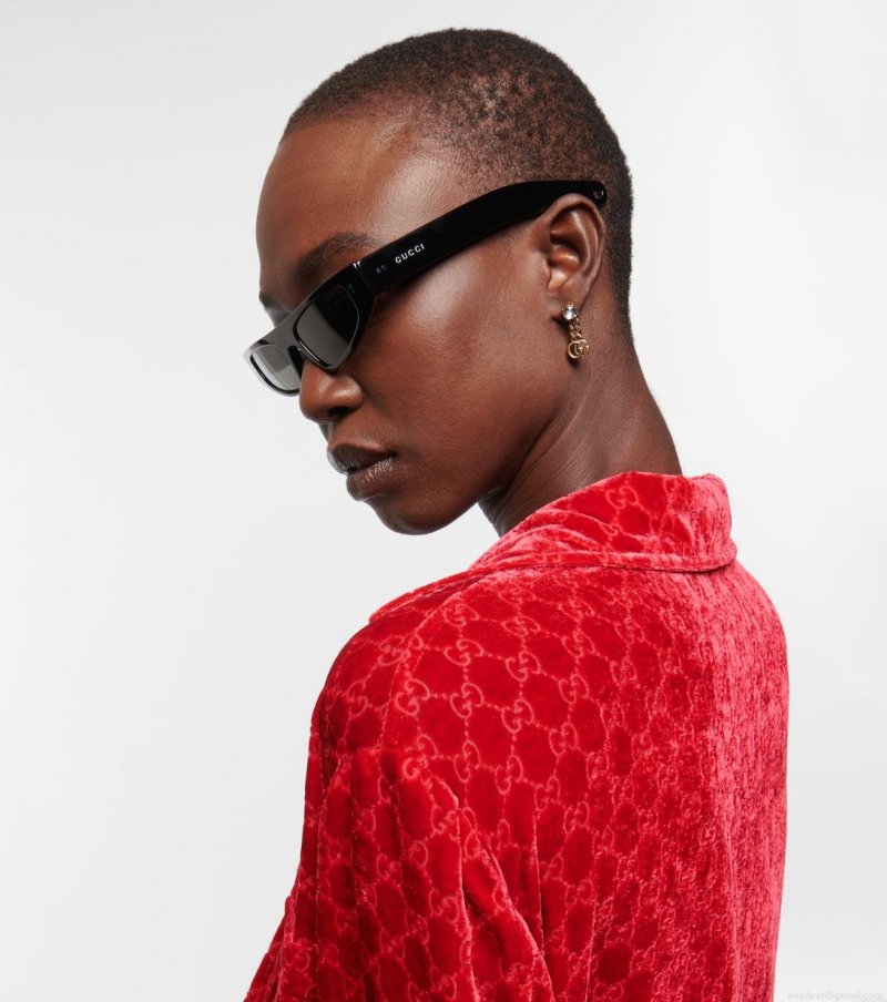 These sunglasses from Gucci are presented in stylish flat-top frames cut from acetate. The silhouette is complemented by a svelte design and angular edges.