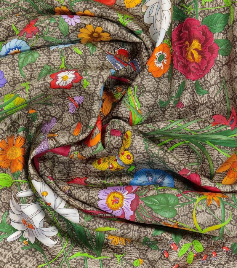 The GG Flora scarf from Gucci will lend a touch of fashion history to your most modern accessory line-ups, as it features the house's archival print. It's made from organic silk, trimmed with a pastel pink border, and comes in a square shape that can be tied elegantly around the neck, or knotted through your hair.