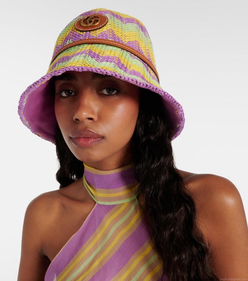 / GucciGG printed leather-trimmed bucket hat