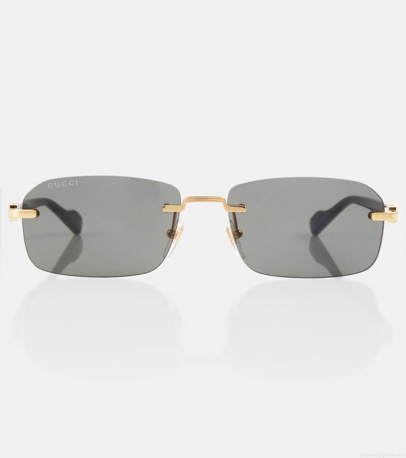 Experiment with Gucci’s take on noughties-inspired styling. The rimless rectangular silhouette is made in Japan and arrives in a protective case. This design has branding and Web stripe detailing on the temples.