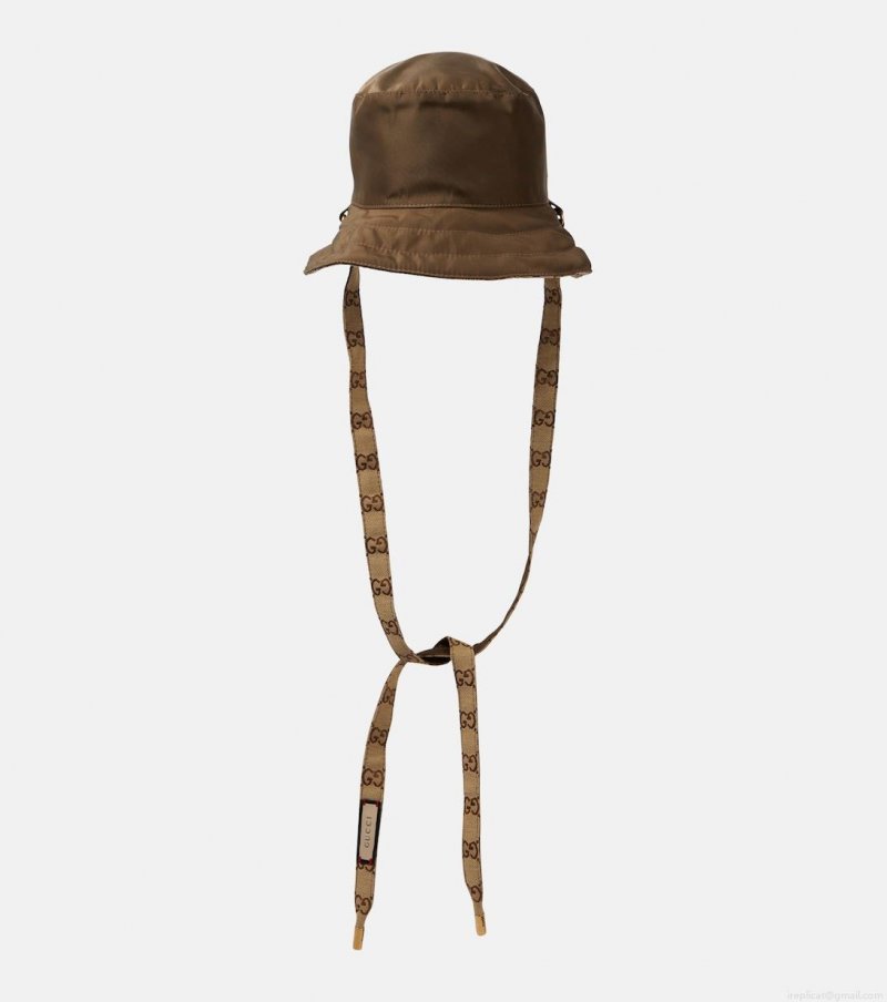 In a brand-signature twist, this bucket hat from Gucci is a reversible style, featuring the GG canvas on the inverse. The classic design is made from nylon and updated with self-tie straps.