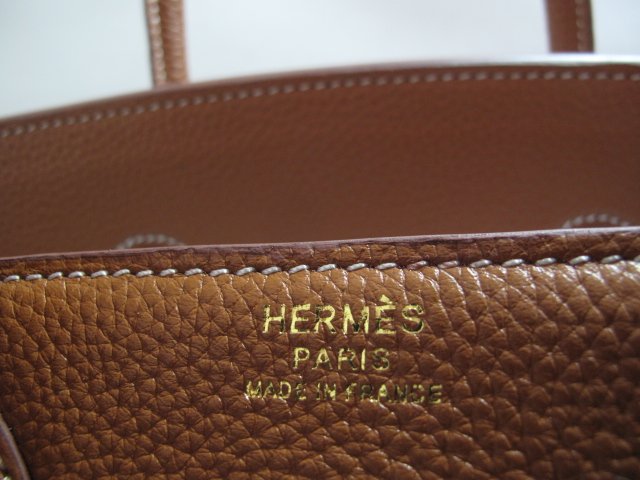 HERMES PARIS MADE IN FRANCE EMBOSSED ON FRONT OF BAG UNDER FLAP