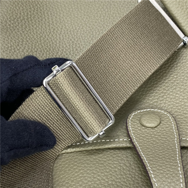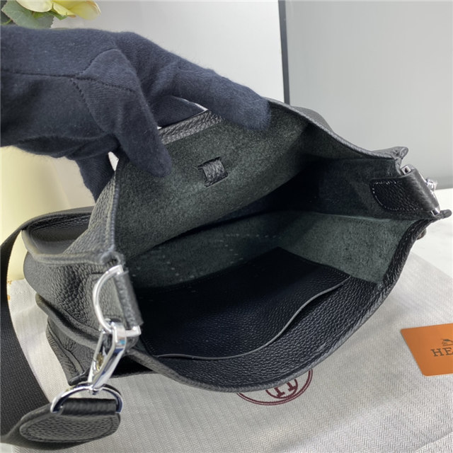 Bag in taurillon Clemence leather with adjustable shoulder strap, perforated leather “H”, exterior pocket, leather tab closure and palladium-plated hardware.