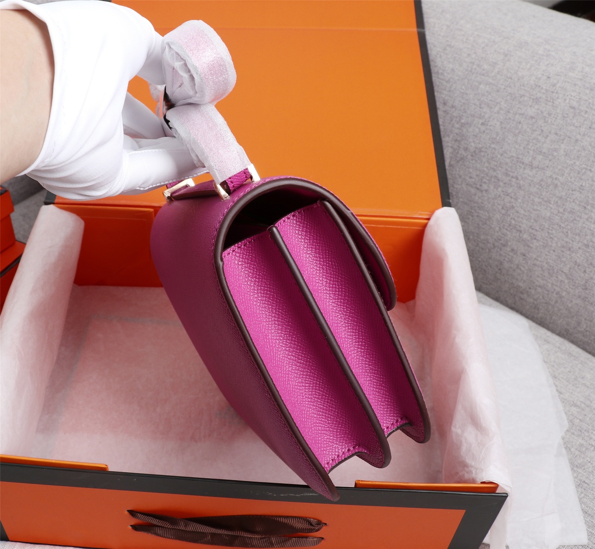 Hermès, originating from France, offers the authentic Constance flight attendant bag, made from high-quality epsom leather. It features a pure steel silver-plated buckle and boasts an exceptional tactile sensation with its premium leather material. The accessories include finely crafted steel laser logos, and the flawless curvature and three-dimensional effect of the flap enhance its elegance. This top-tier bag is meticulously handcrafted for a perfect finish.