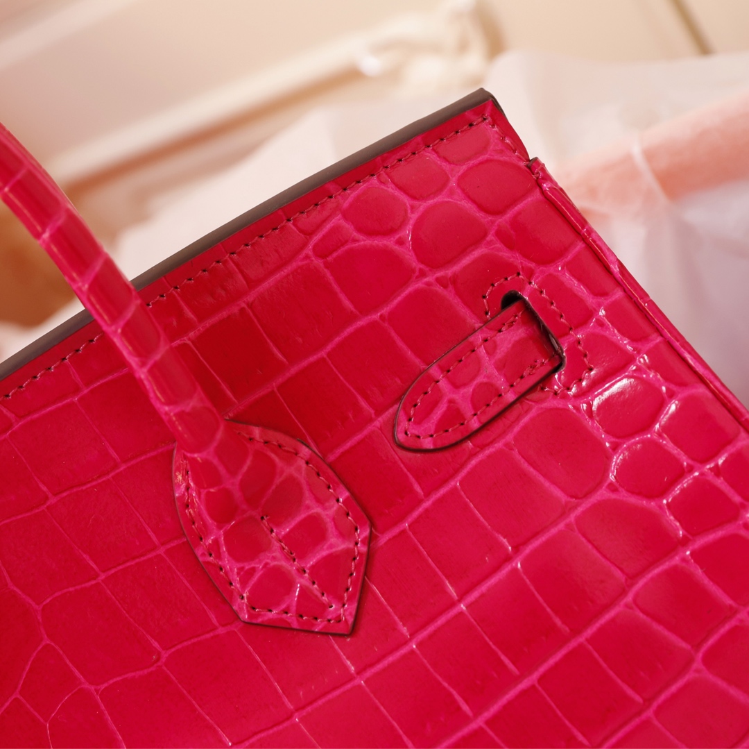 H Birkin in shiny crocodile leather, Vert Fonce. It is the most stunning and classic high-gloss crocodile pattern in Hermès! The pattern is one-of-a-kind, with pure steel hardware, showcasing an astonishing elegance.