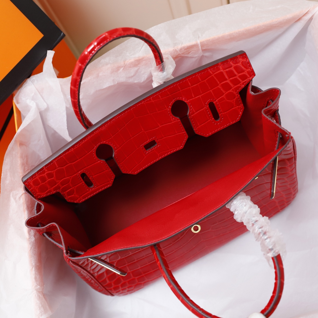 H Birkin in shiny crocodile leather, Vert Fonce. It is the most stunning and classic high-gloss crocodile pattern in Hermès! The pattern is one-of-a-kind, with pure steel hardware, showcasing an astonishing elegance.
