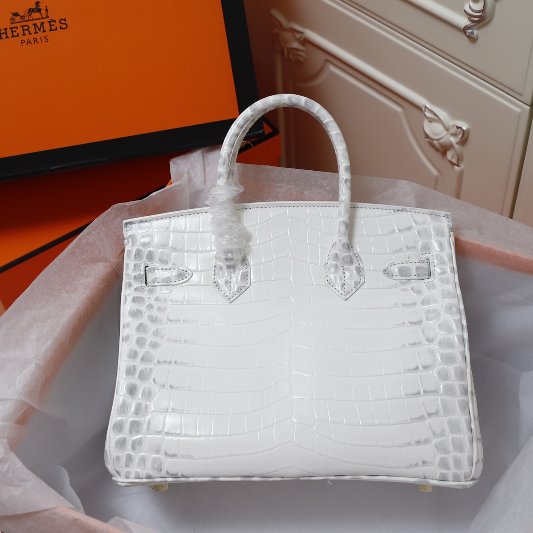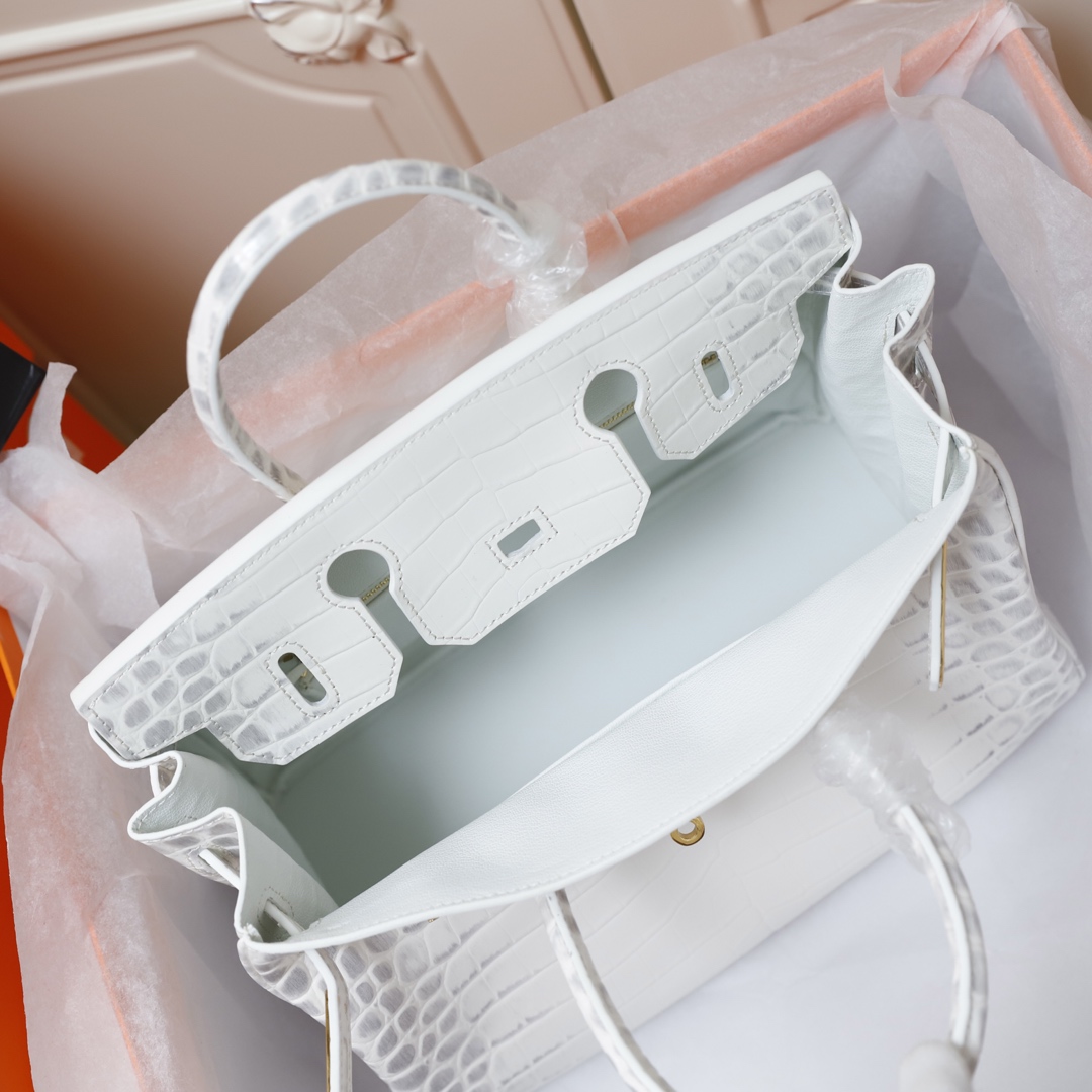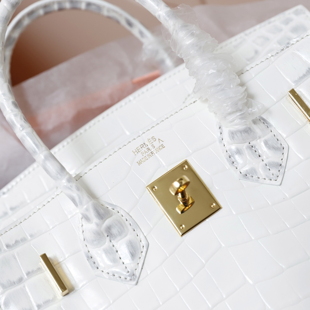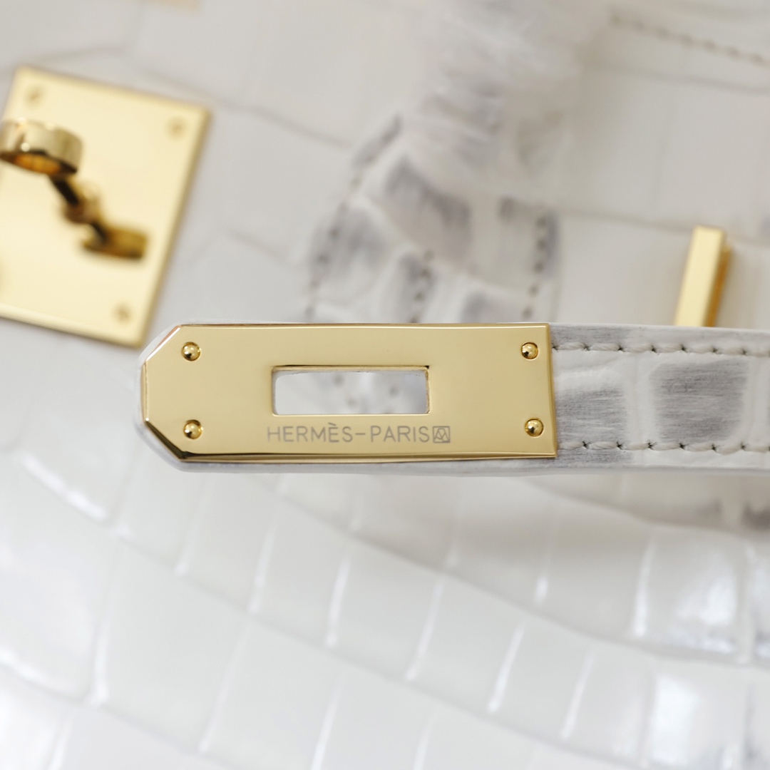 H Birkin in shiny crocodile leather, Vert Fonce. It is the most stunning and classic high-gloss crocodile pattern in Hermès! The pattern is one-of-a-kind, with pure steel hardware, showcasing an astonishing elegance.
