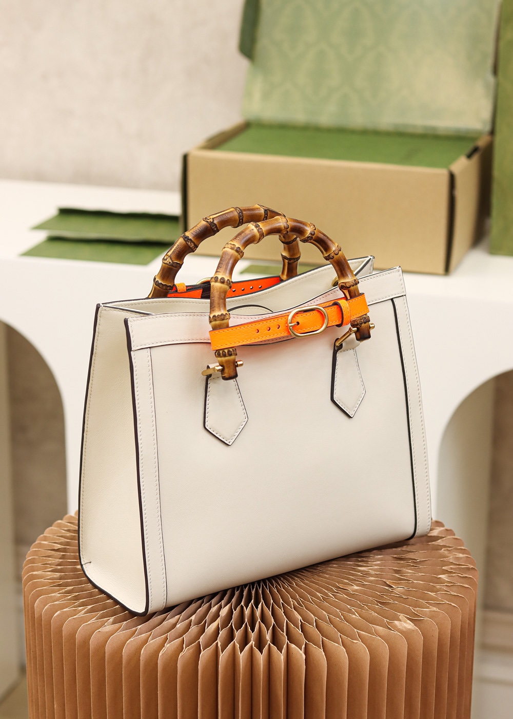 Additional leather shoulder strap.