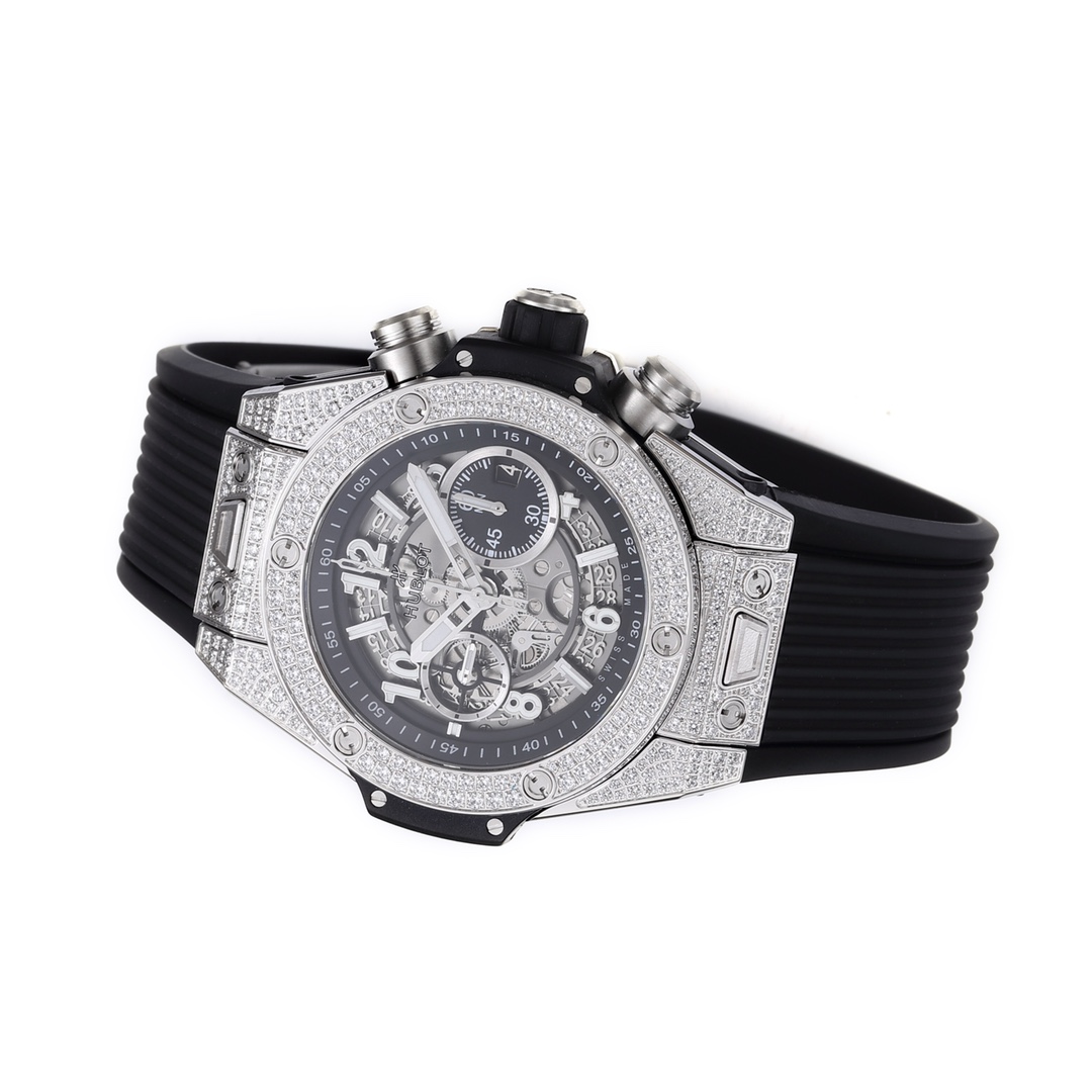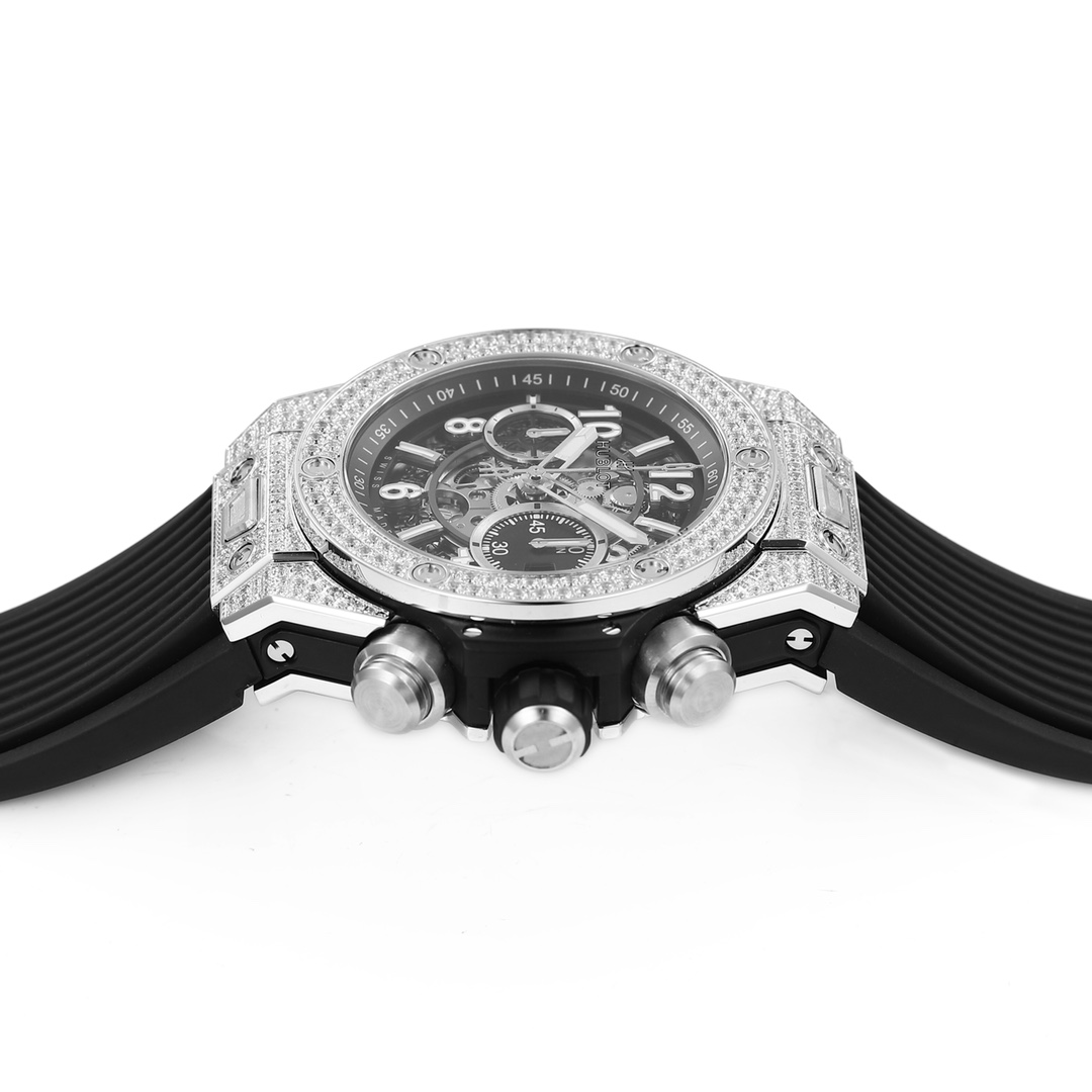 Functions: Hours, minutes, small seconds, and date display; Chronograph
