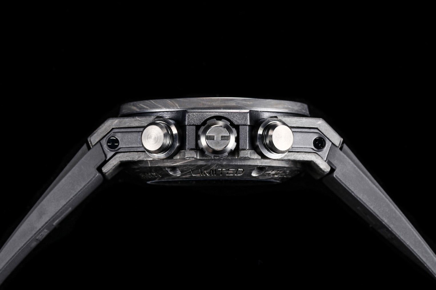 The watch comes with two interchangeable straps, including a fabric sports strap in a matching color scheme and a black structured rubber strap. Additionally, this watch is equipped with a “one-click” quick-change strap system, allowing the wearer to easily and quickly replace the strap with a gentle press!