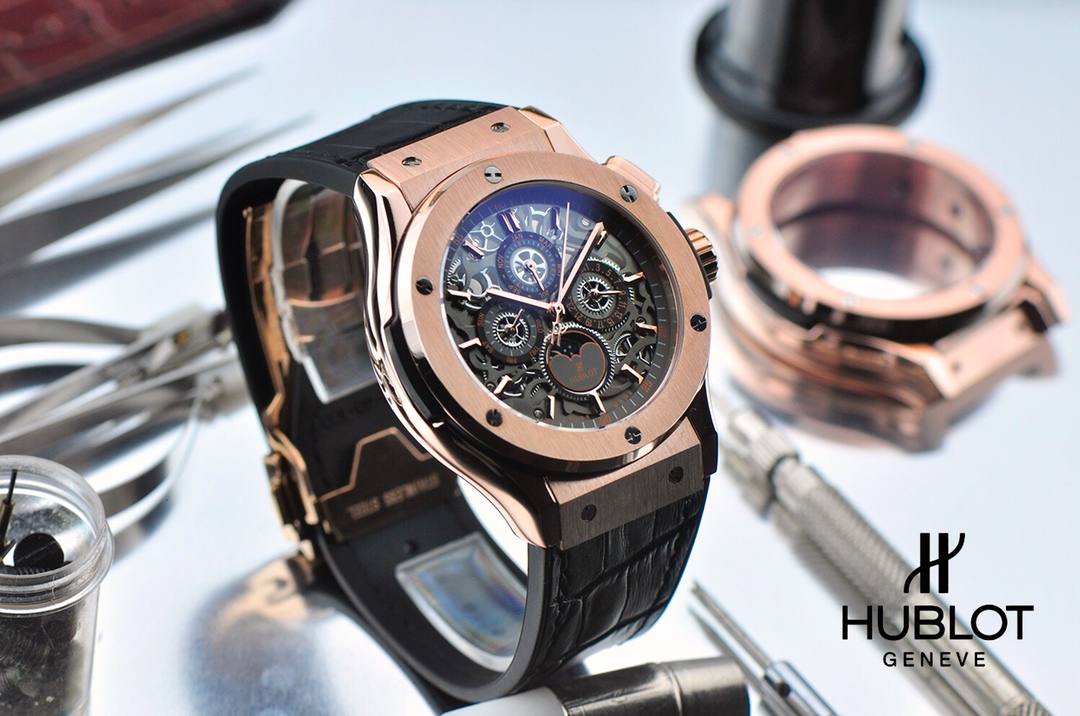 With a diameter of 45mm, this watch showcases the micro-mechanical marvels inside. The skeletonized design creates another magnificent landscape in the art of watchmaking, allowing the wearer to appreciate the inner workings of the timepiece. Hublot adheres to the concept of “the art of fusion” and has conceived an unprecedented concept of skeletonized watches, endowing it with a unique modern structural beauty. This timepiece features functions such as day, date, month, and day/night display.