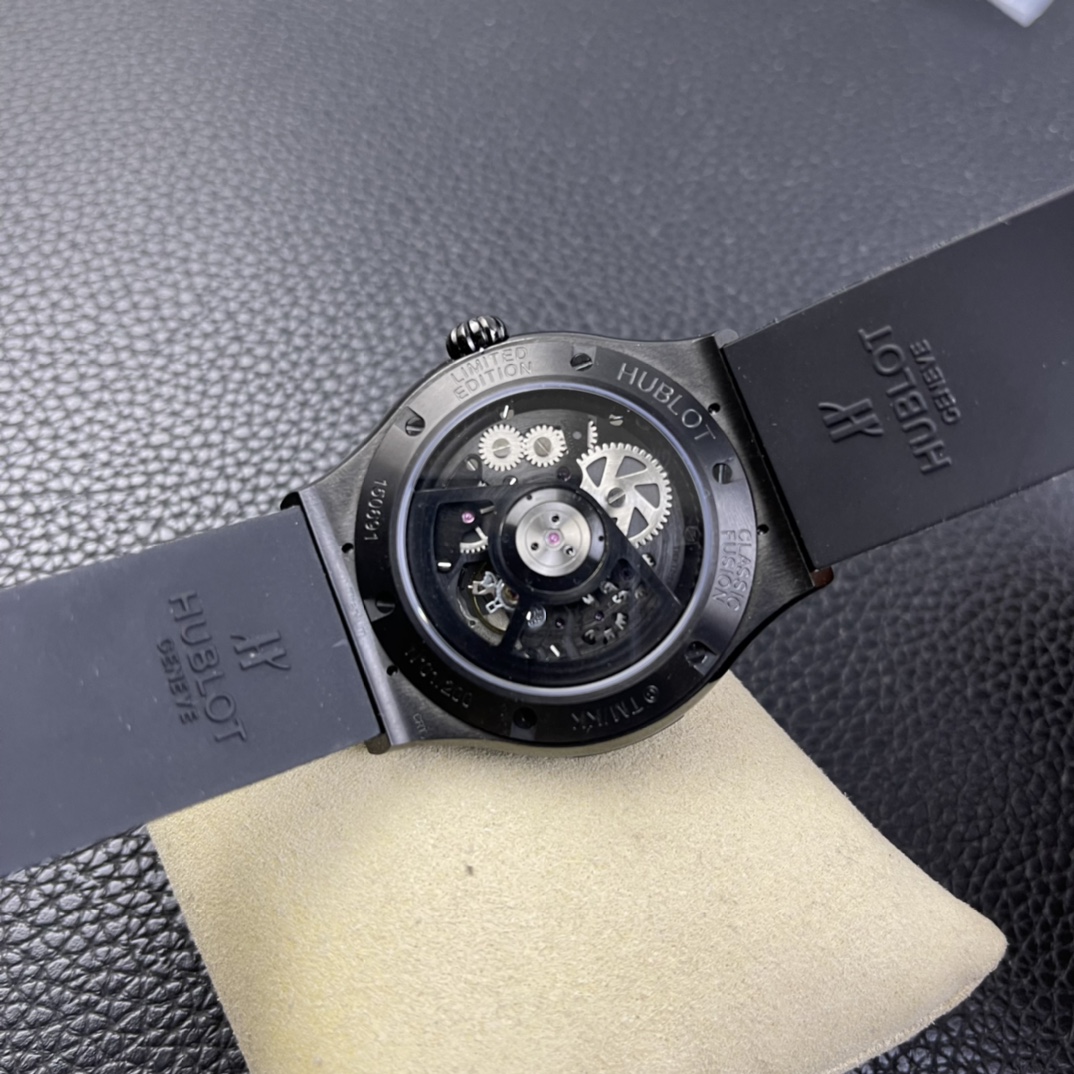 Movement: MHUB1214 UNICO complex self-winding movement, smoked ruthenium-plated bridges and mainplate, smoked coating on the oscillating weight, tungsten oscillating weight, surface finishes with micro-blasting and satin-finish, Swiss lever escapement with silicon lever, 256 components, 30 jewels, 4Hz frequency (28,800 vibrations per hour), 72-hour power reserve