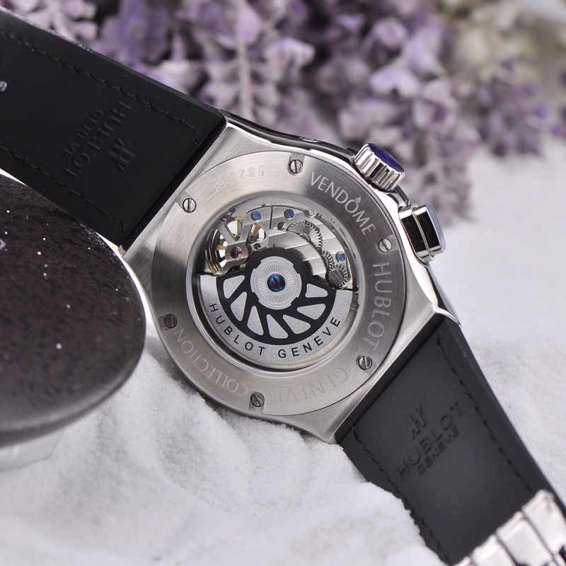 With a diameter of 45mm, this watch showcases the micro-mechanical marvels inside. The skeletonized design creates another magnificent landscape in the art of watchmaking, allowing the wearer to appreciate the inner workings of the timepiece. Hublot adheres to the concept of “the art of fusion” and has conceived an unprecedented concept of skeletonized watches, endowing it with a unique modern structural beauty. This timepiece also features a day and date function, adding practicality to its design.