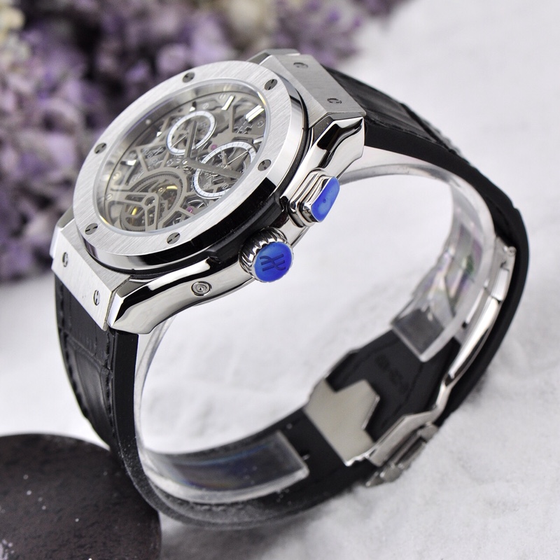 With a diameter of 45mm, this watch showcases the micro-mechanical marvels inside. The skeletonized design creates another magnificent landscape in the art of watchmaking, allowing the wearer to appreciate the inner workings of the timepiece. Hublot adheres to the concept of “the art of fusion” and has conceived an unprecedented concept of skeletonized watches, endowing it with a unique modern structural beauty. This timepiece also features a day and date function, adding practicality to its design.