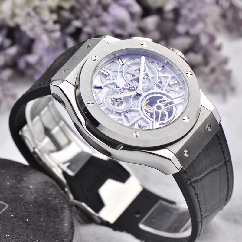 With a diameter of 45mm, this watch showcases the micro-mechanical marvels inside. The skeletonized design creates another magnificent landscape in the art of watchmaking, allowing the wearer to appreciate the inner workings of the timepiece. Hublot adheres to the concept of “the art of fusion” and has conceived an unprecedented concept of skeletonized watches, endowing it with a unique modern structural beauty. This timepiece also features a day and date function, adding practicality to its design.
