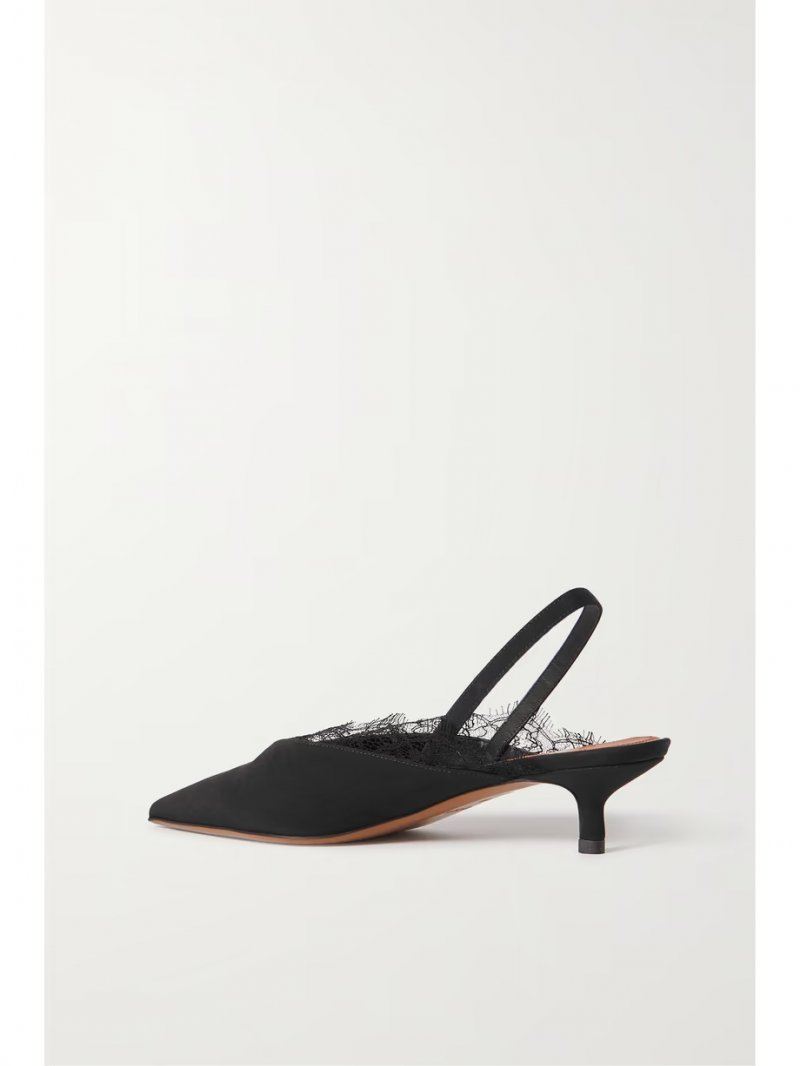 - Black crepe de chine and lace
