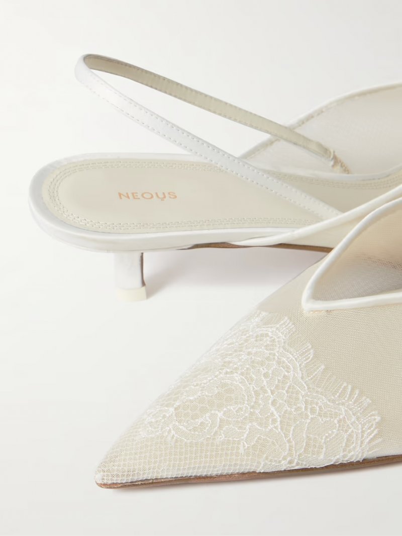 - Cream mesh, lace and satin
