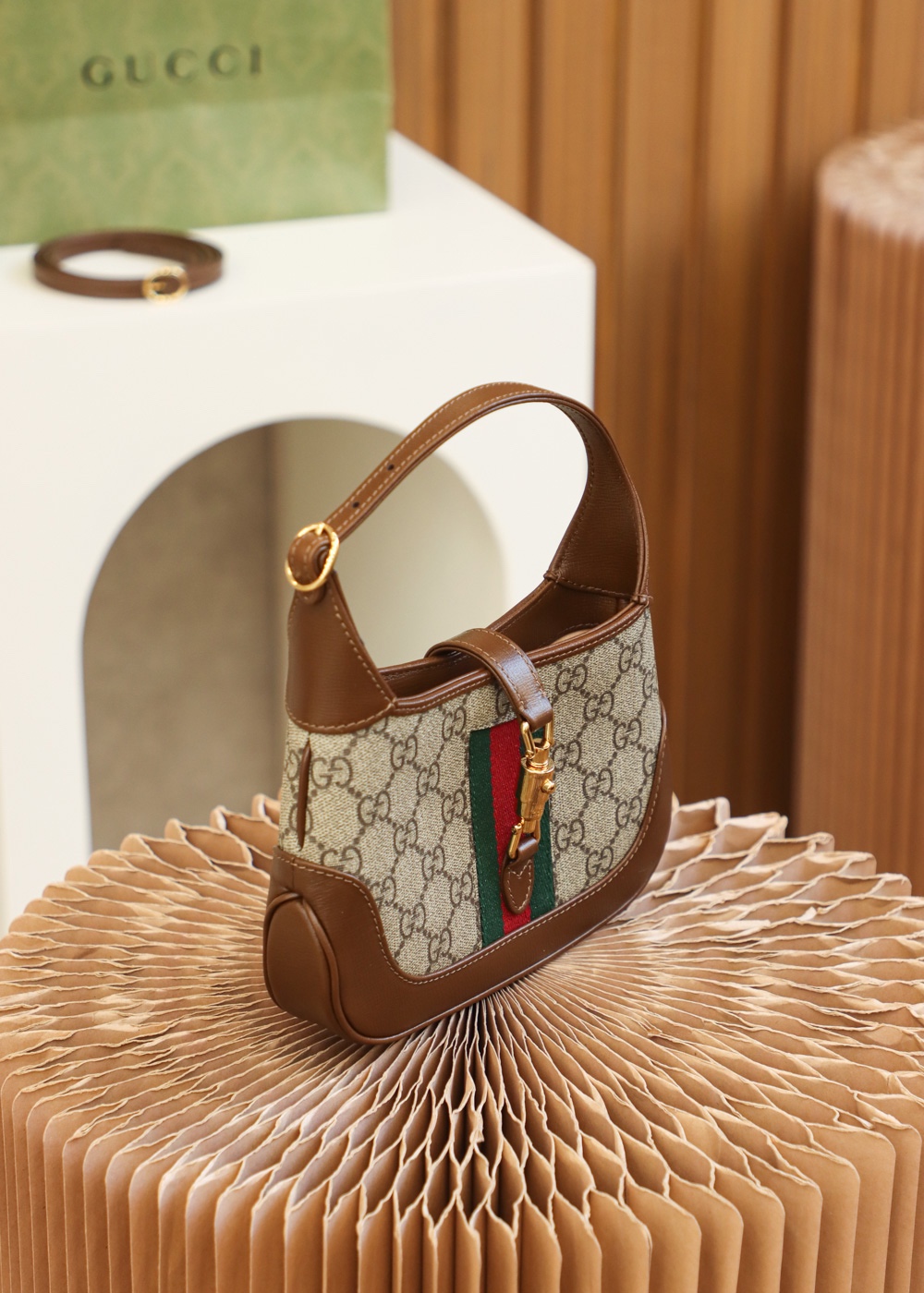 The reintroduction of the Jackie bag in a mini size for Fall Winter 2020 presents a new take on a historical Gucci icon. Brought back to the forefront, the recognizable shape is presented in GG Supreme canvas and enhanced with an additional, detachable shoulder strap. Attached to the bag with a buckle closure, the second strap adds a contemporary feel to the archival style, providing new ways to wear—from top handle, shoulder to cross body. Pieces with versatile ways to wear and style embrace each person who is part of the House’s individual spirit.