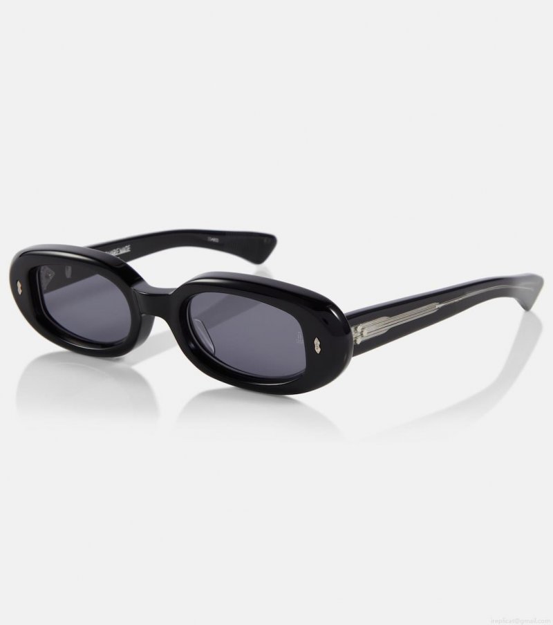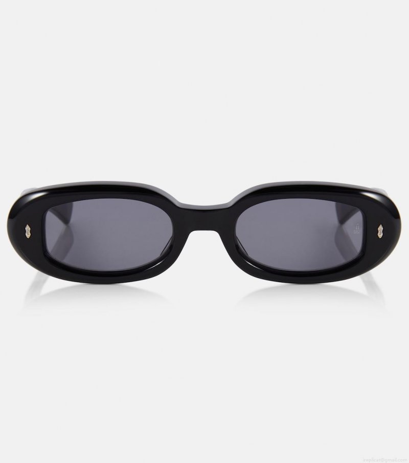 Drawing inspiration from an eclectic mix of art movements, Jacques Marie Mage crafts eyewear that serve as collectible objet d'arts. The Besset sunglasses are a black oval-shaped pair with grey lenses and silver-toned accents.