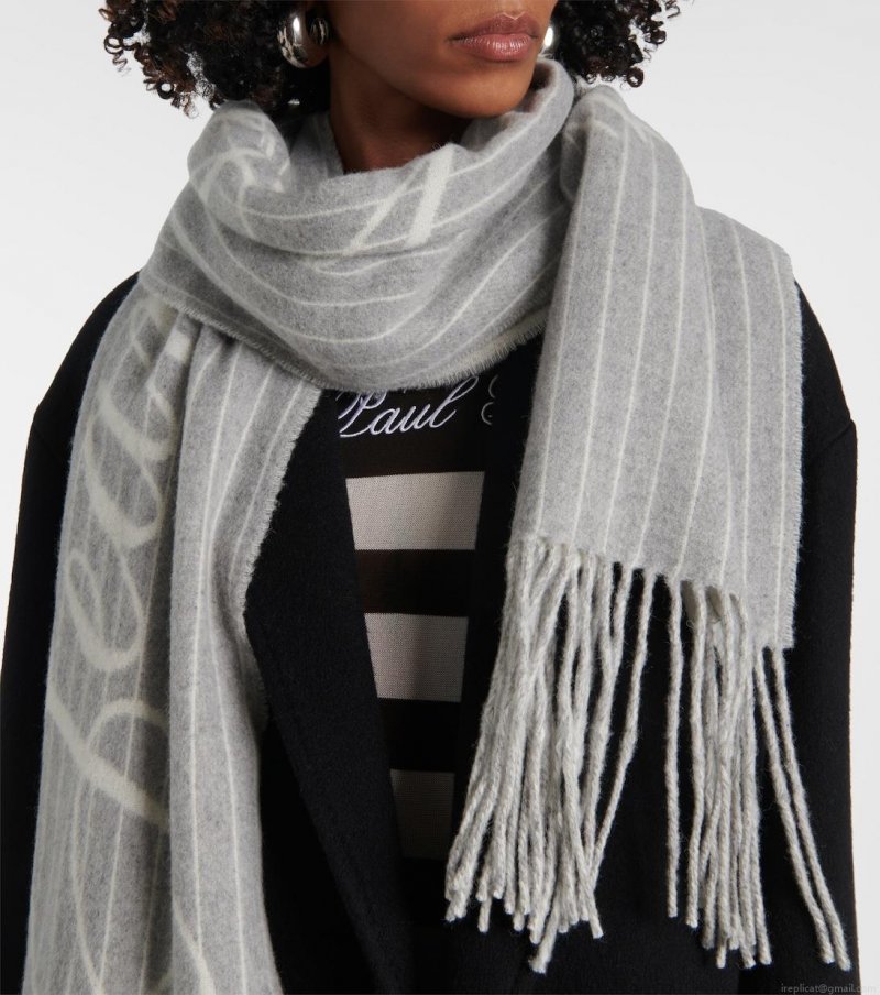 / Jean Paul GaultierLogo pinstripe fringed wool scarf