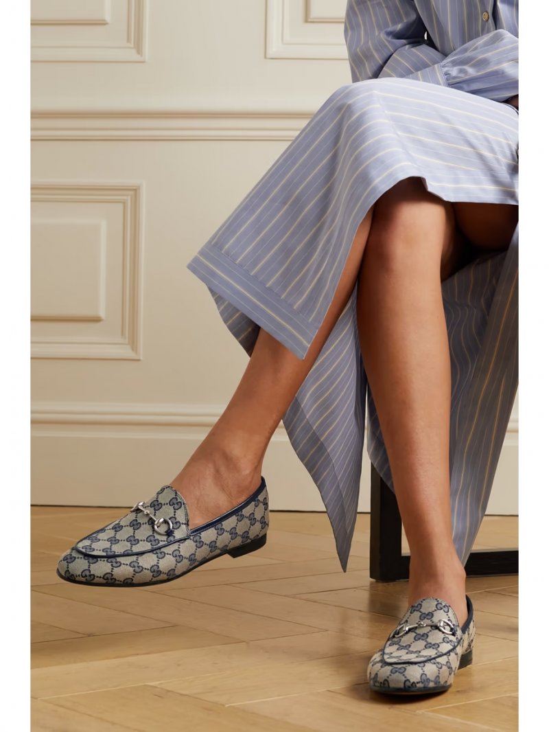 - Beige and midnight-blue coated-canvas, midnight-blue leather (Goat)
