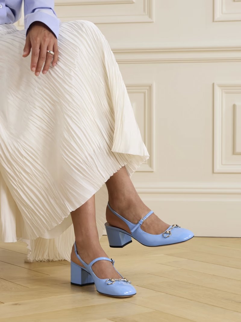 - Light-blue patent-leather