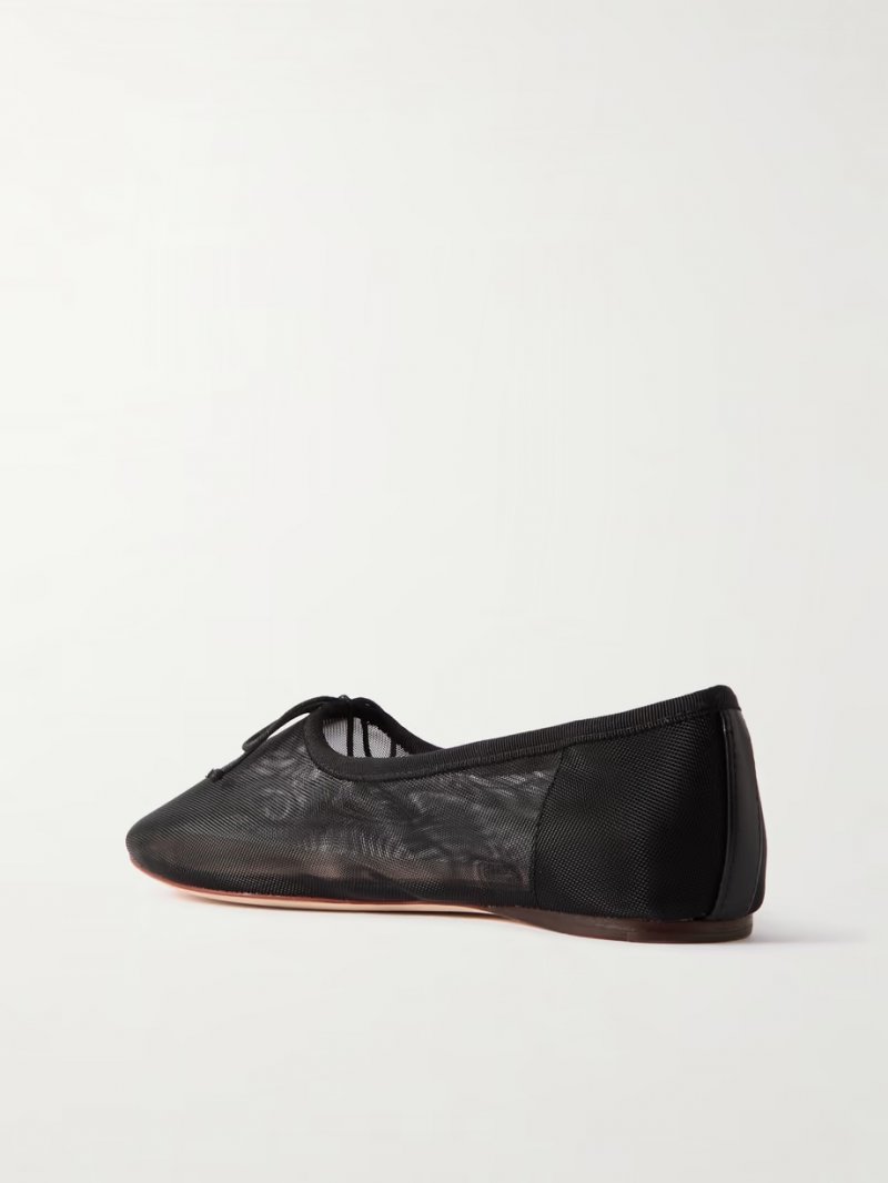 Arabella buckled leather-trimmed mesh Mary Jane flats