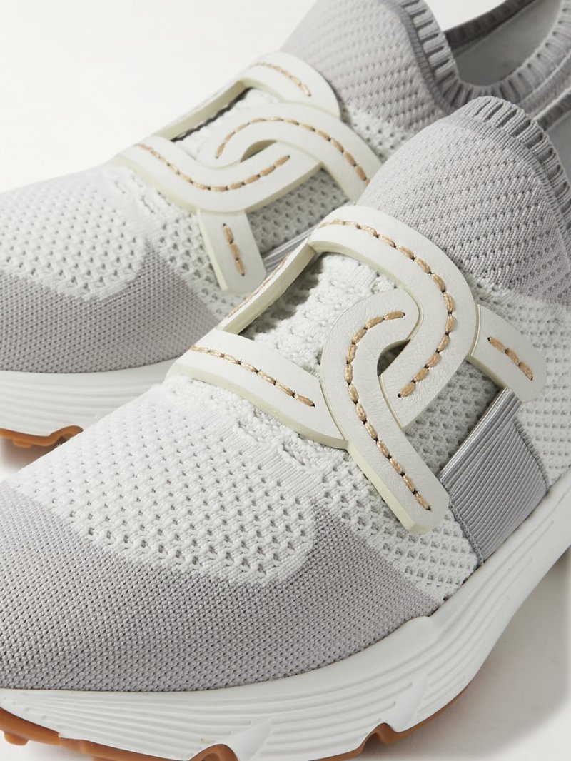 - Grey and white stretch-knit, cream leather (Calf)