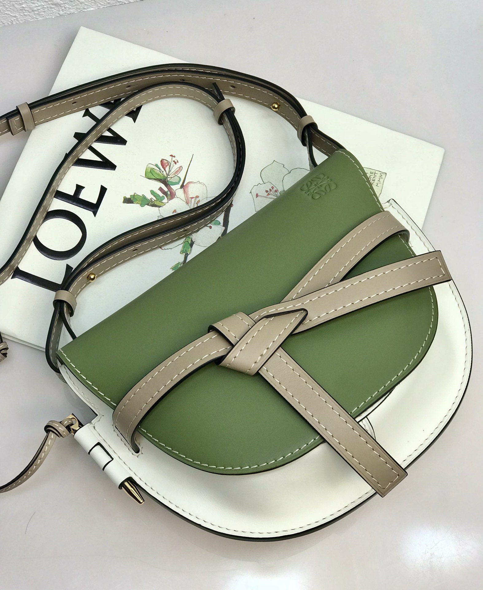 Introducing the latest black color of the embossed “Loewe” (Latest color: black) saddle bag, the new spring collection of 2019. The new color Gate handbag with embossed texture is beyond words to express its beauty. The bowknot on the bag cover adds a perfect touch of fashion. Versatile and suitable for both men and women, the Gate handbag brings a fresh and daring feeling when paired with different styles. It illuminates your entire outfit, making you a fashion icon. Comes with official boutique packaging.