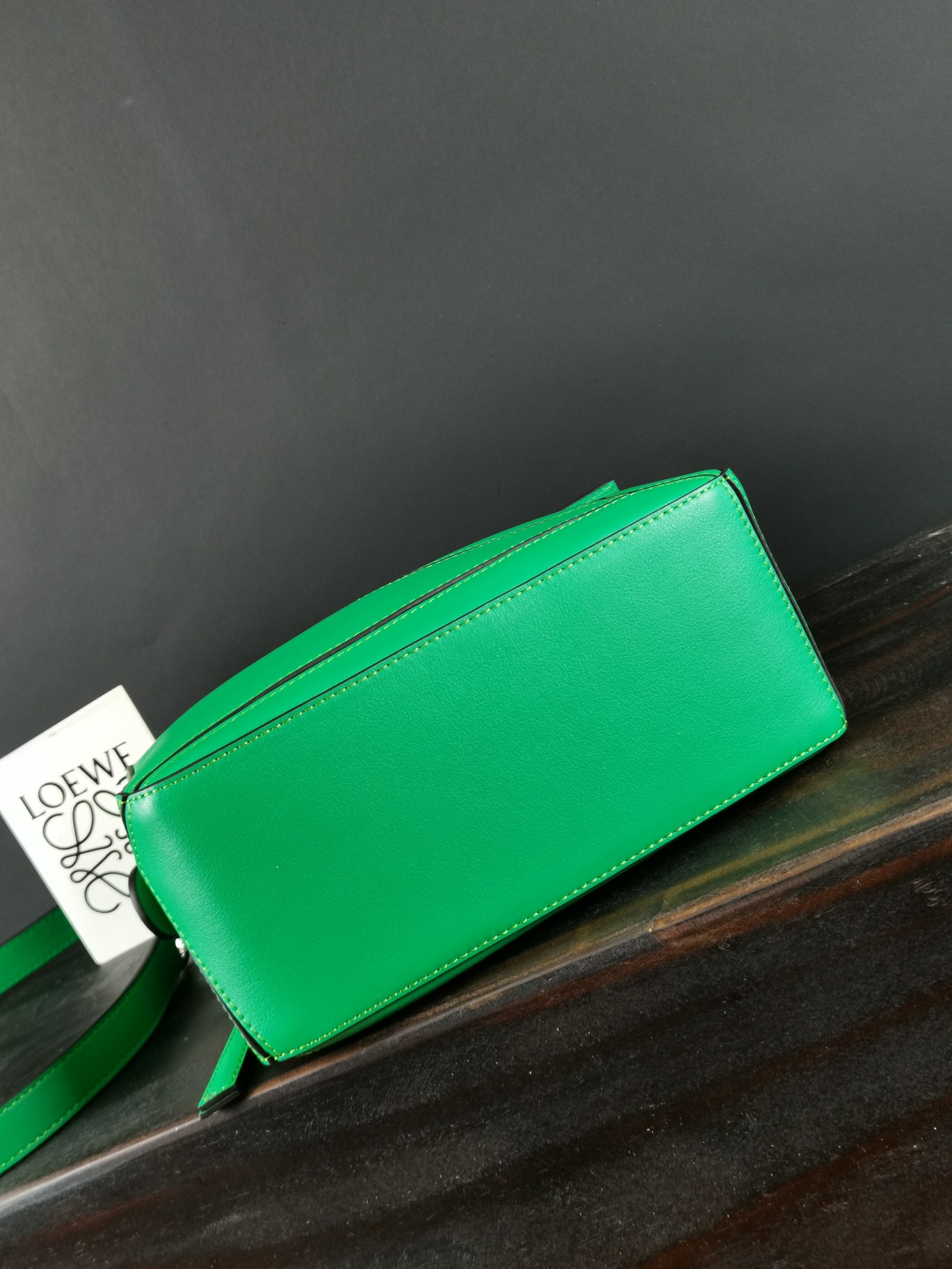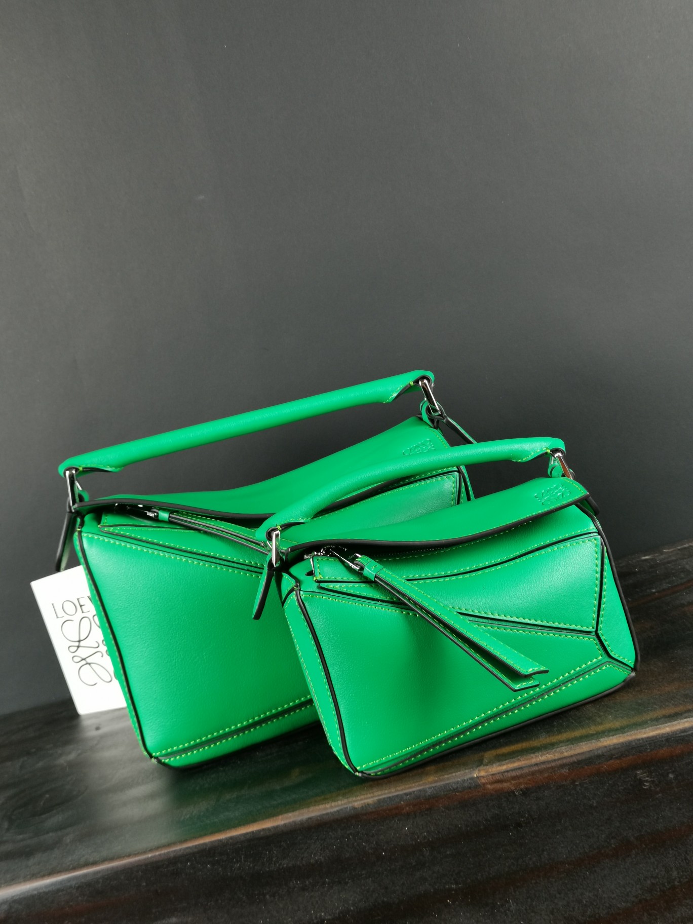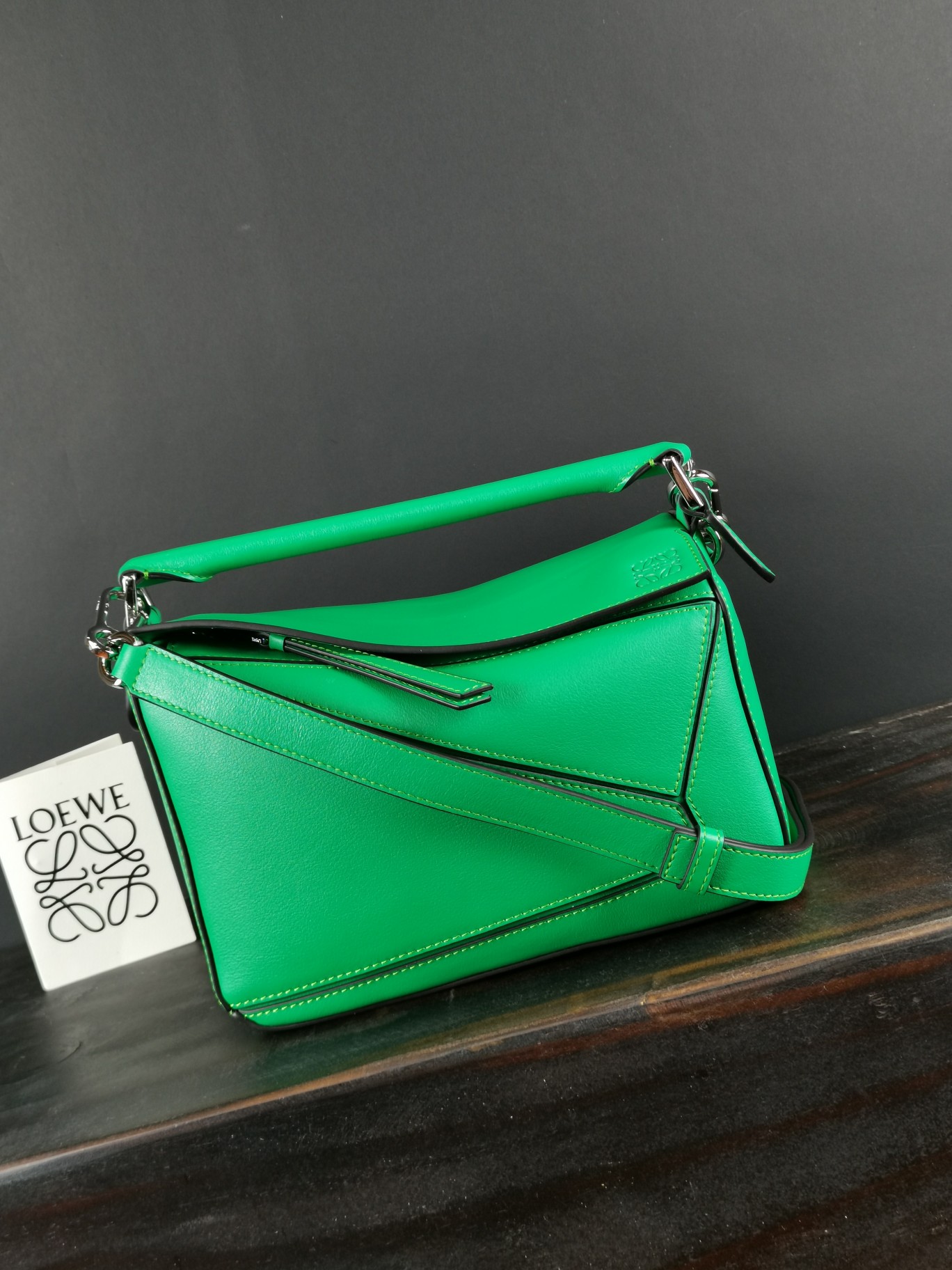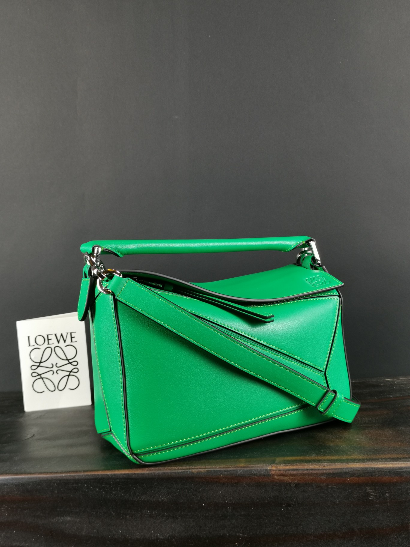The Loewe Puzzle in its latest rendition features a small-sized slender shoulder strap, bottom without feet studs, and seamless construction. The interior is fully lined with leather, and it is made with imported Spanish calf leather, which is soft and has an incredibly smooth texture. The leather is precisely cut, allowing it to naturally fold, making it suitable for hand-carrying or crossbody wear (multiple ways to use). The long shoulder strap is detachable, and it features a textile lining.