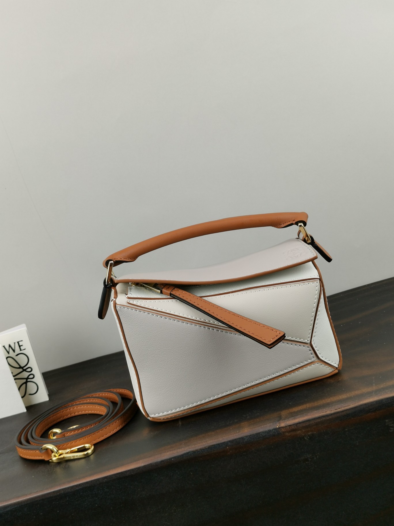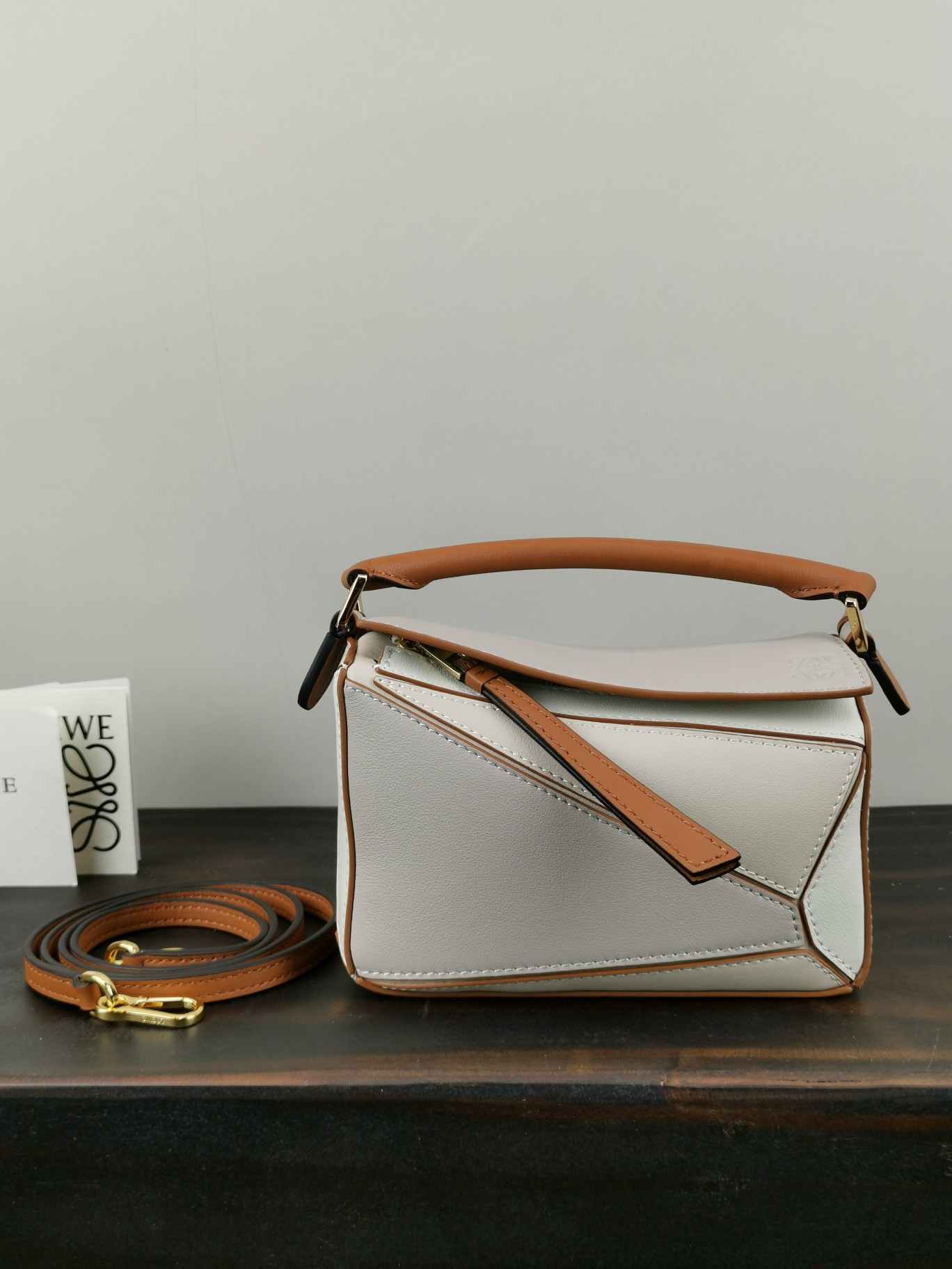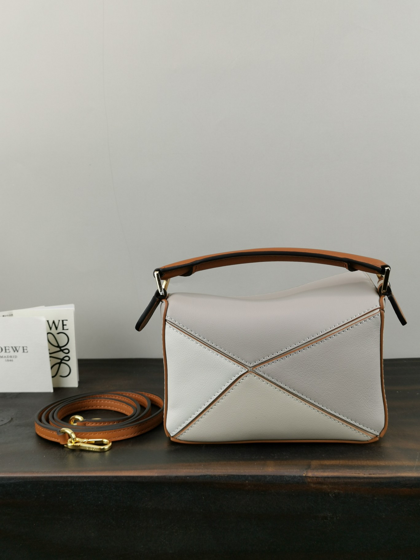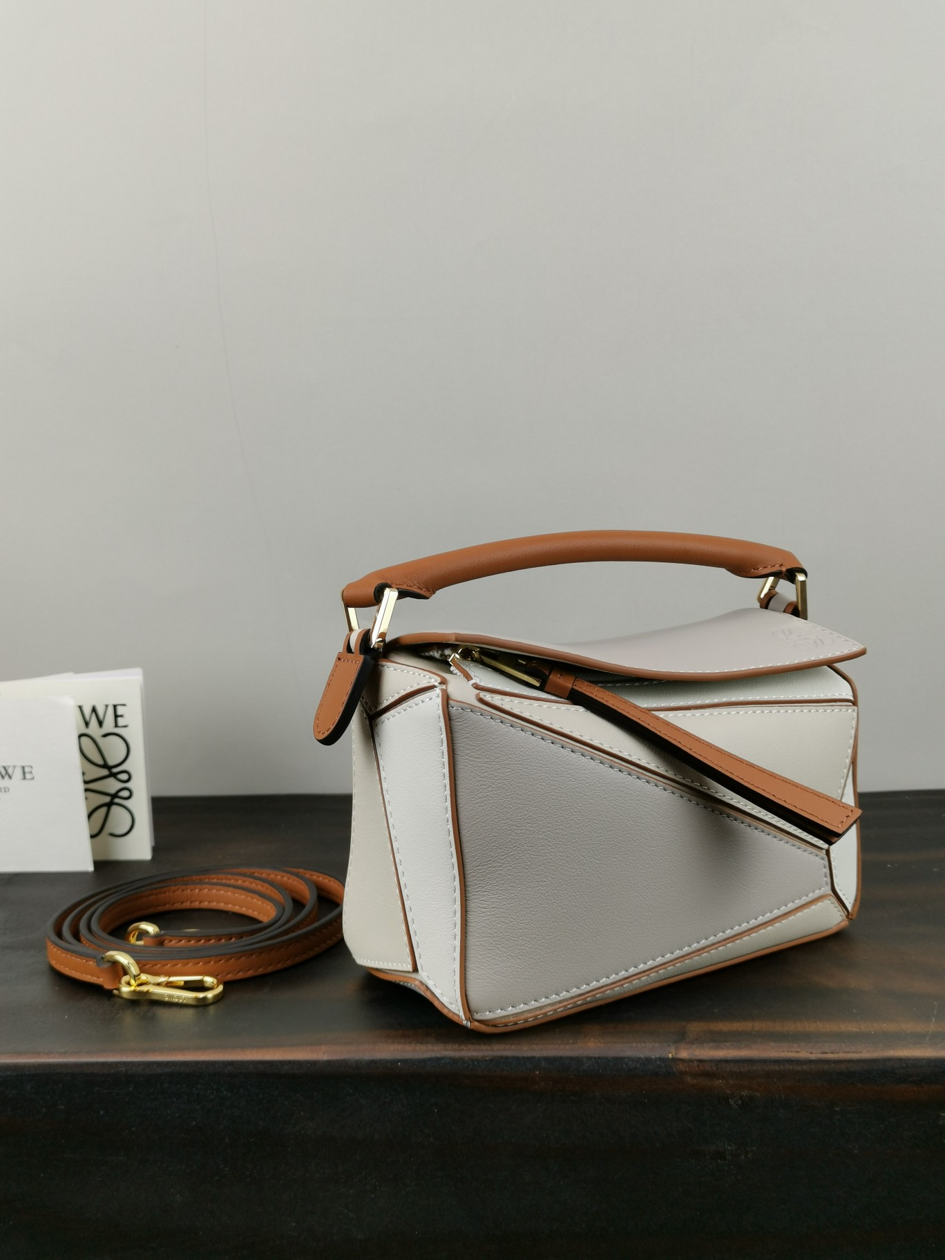 PUZZLE New Color Arrival. With a minimalist and stylish geometric design, this handbag is made of customized calf leather with a cotton and linen lining. The mini size offers a compact body with generous capacity for carrying lipsticks and compact powders effortlessly. No pressure, it comes with packaging.