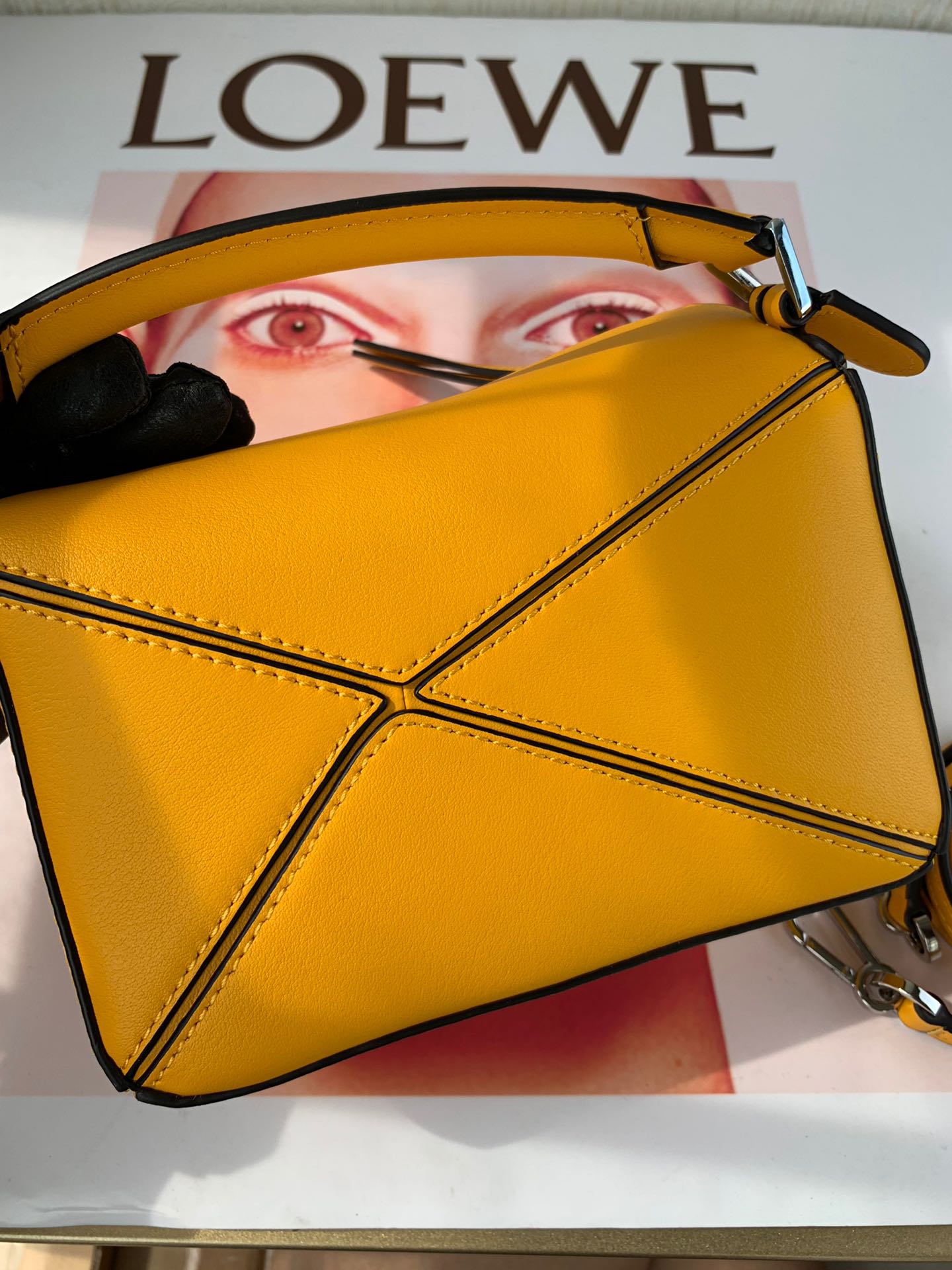 PUZZLE New Color Arrival. With a minimalist and stylish geometric design, this handbag is made of customized calf leather with a cotton and linen lining. The mini size offers a compact body with generous capacity for carrying lipsticks and compact powders effortlessly. No pressure, it comes with packaging.