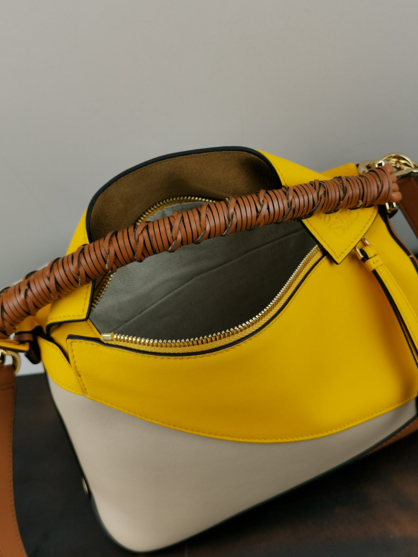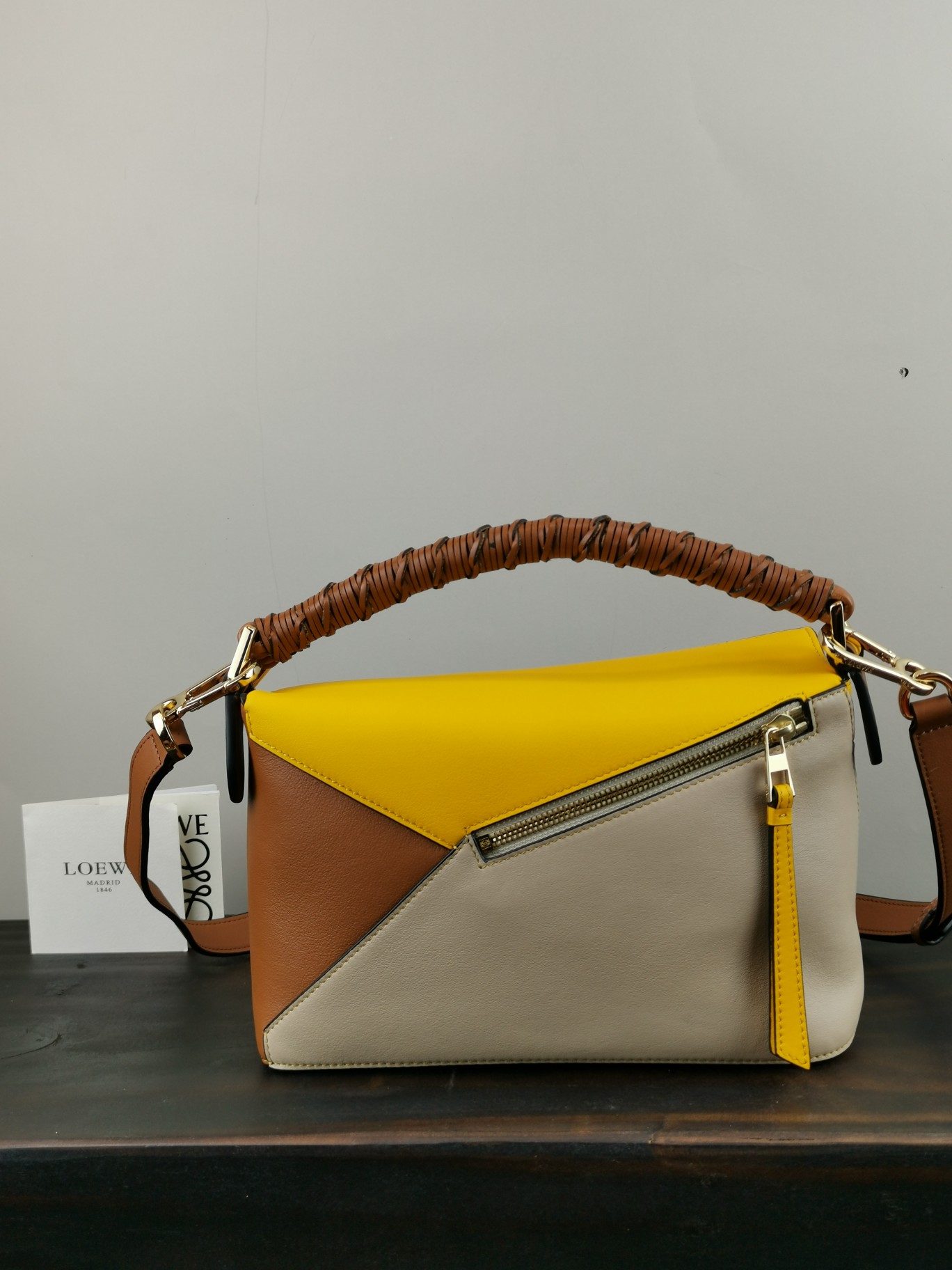 The woven handle of the Loewe Puzzle adds a distinctive touch that is unforgettable. It is made with imported Spanish calf leather, which is soft and has an incredibly smooth texture. The leather is precisely cut, allowing it to naturally fold, making it suitable for hand-carrying or crossbody wear (multiple ways to use). The long shoulder strap is detachable, and it features a textile lining.