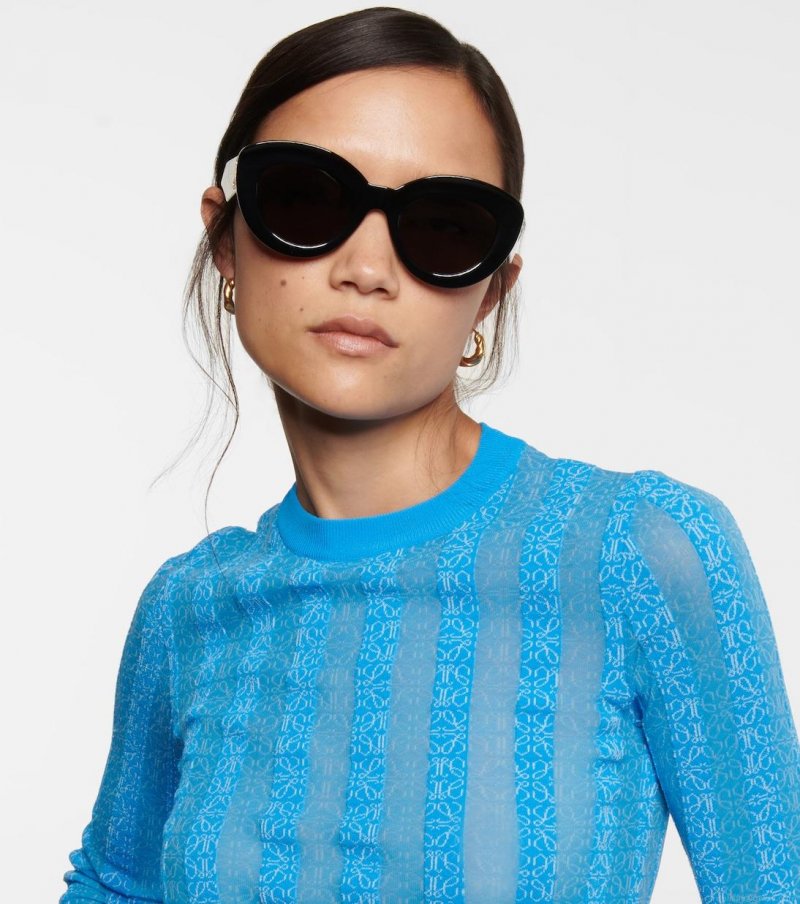 These cat-eye sunglasses are Loewe’s interpretation of the classic silhouette. Made in Italy from sturdy black acetate, they feature the label's gold-tone Anagram logo on the temples. Please note that the color of the protective case may vary.