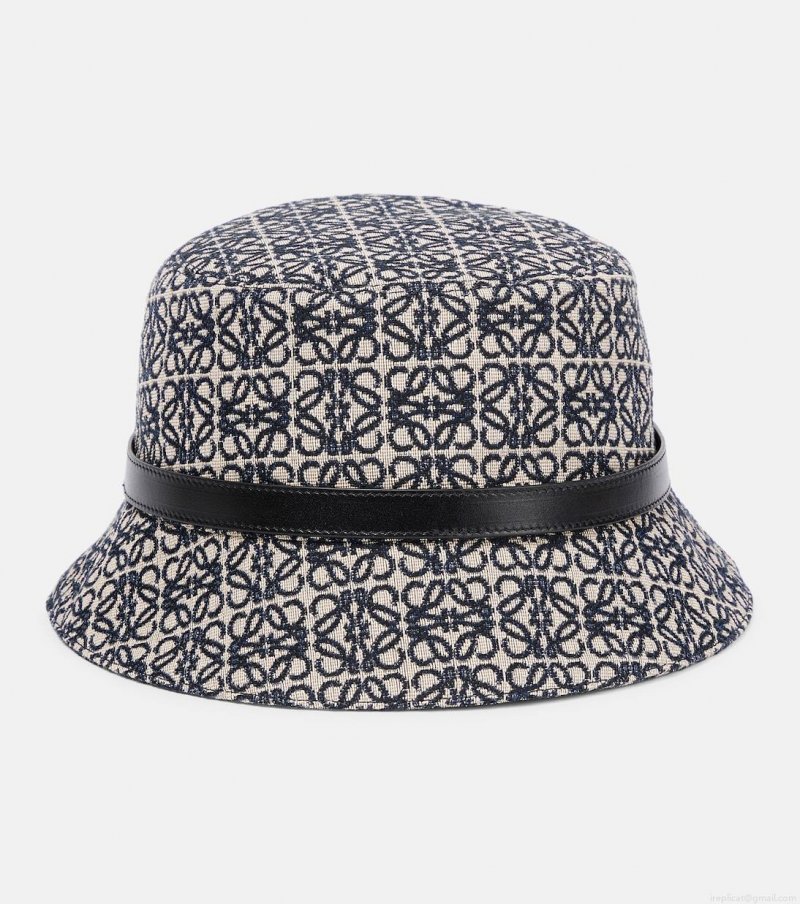 The Anagram logo was designed by the Spanish artist Vicente Vela as a quadruple-L insignia that now lends instant recognition to any Loewe piece. This cotton bucket hat features a leather band with gold-tone lettering.