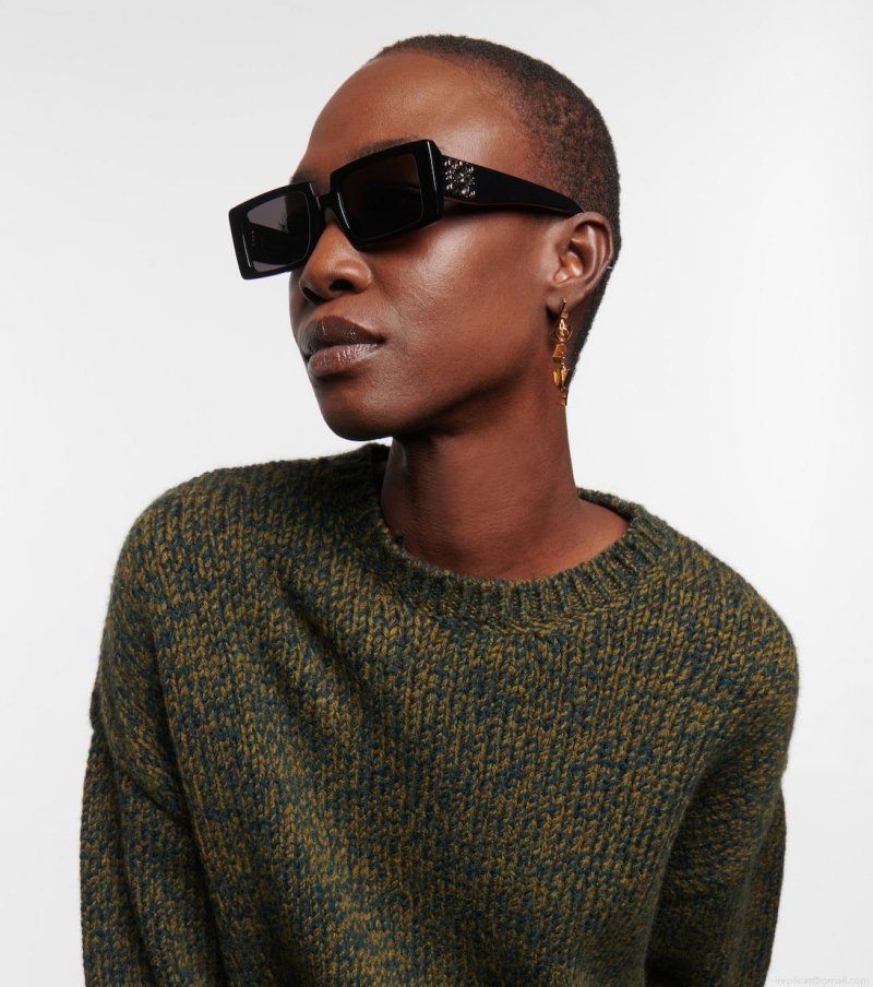 Stay elusive in the Anagram square sunglasses from Loewe. Crafted in Italy from acetate, this rectangular design is fitted with black tinted lenses and accented with the house’s famed Anagram logo at either temple.
