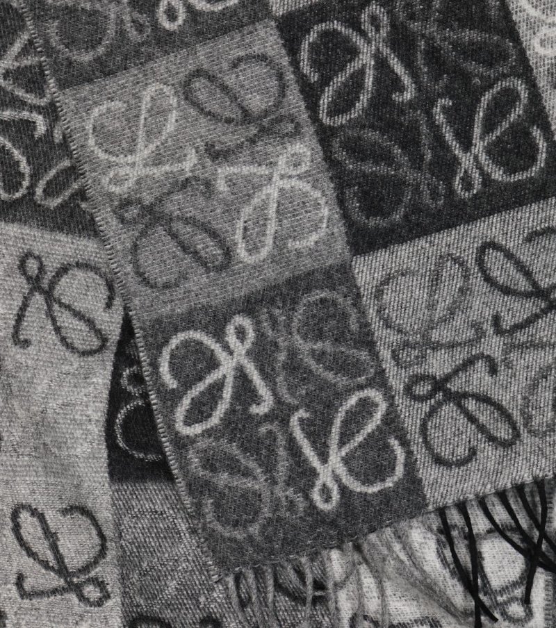 Envelop yourself in this soft wool and cashmere scarf with subtle logo branding from Loewe. This intarsia-knit checkerboard design features the brand's ornate Anagram motif and fringed edges.