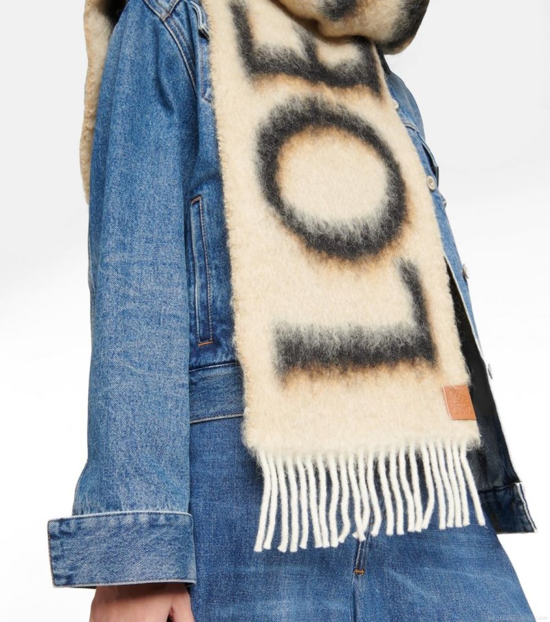 Made from a soft wool-blend with logo jacquard detailing, this scarf from Loewe is finished with fringed edges.