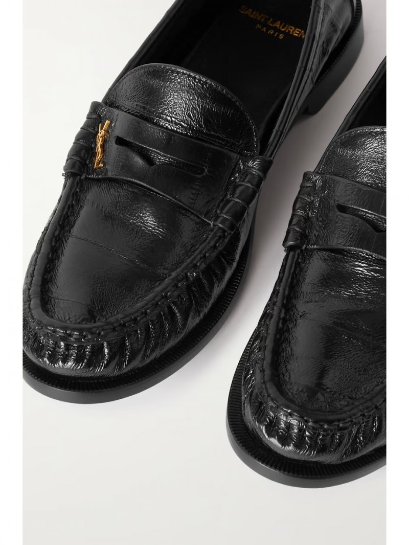 - Black glossed textured-leather (Eel)